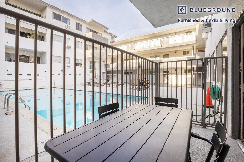 Show up and start living from day one in Los Angeles with this cozy one bedroom Blueground apartment. You’ll love coming home to this thoughtfully furnished, beautifully designed, and fully equipped Brentwood home. (ID #LAX188) The advertised rate of $3,120/month is the lowest available price, based on a 11 month(s) and 29 day(s) stay with a move-in date of April 29, 2029. Rates vary depending on the duration of stay, season, and other parameters. For exact pricing and additional pricing components, please visit our website and enter your desired move-in and move-out dates. The rate is applicable when billed upfront; it can be higher if billed in multiple payments. Brokers are welcome to reach out. Were you looking for an unfurnished lease? Try Blueground instead and upgrade from unfurnished to furnished living: - Furnished at rates comparable to unfurnished - No setup or furniture costs - save thousands - Move-in ready - save time, just bring your suitcase Designed with you in mind Thoughtfully designed with bespoke finishes, modern furnishings, and a fully equipped kitchen, you’ll enjoy that “I’m home” feeling with this Blueground apartment. Whether you’re lounging in your cheery living room streaming the latest and greatest entertainment on the smart TV or premium wireless speaker, or getting some well-earned rest on the superior quality mattress with fully stocked linens, you’ll fall in love with everything this Brentwood apartment has to offer. Sleeping arrangements King Bed, 70.8in/180cm Amenities Building amenities unique to this one bedroom apartment include an on-site: - Dryer in building - Elevator - Swimming pool - Washing machine in building - Parking - Pets allowed Arrival and ongoing support The entire apartment is yours to enjoy! Throughout your stay, you’ll have access to our Client Experience team through the Blueground App. You can schedule additional cleanings, submit maintenance requests, and view our neighborhood recommendations with just a few taps. We’ll share all details upon confirmation of your stay. Ideally Located This furnished apartment is located in Brentwood, a small area on the Westside of Los Angeles. It is well-known for being one of the wealthiest in the county. The quiet neighborhood features tree-lined streets and impressive, upscale homes. San Vicente Boulevard is the main thoroughfare and is full of Italian eateries and cozy cafes. In addition, the Getty Center museum is also located in Brentwood and offers a world-class art collection that is ideal for culture lovers. Other things to note Building amenities may have an extra cost. This Blueground apartment has flexible lease options, allowing you to book it for one month, a year, or more. Pets are welcome, though weight limits and breed restrictions apply and may incur fees. Parking is offered based on availability and is subject to a fee. We take great pride in ensuring every photo displayed is shot in our own units with our actual furnishings. That said, we regularly refresh our decor and furniture arrangement, which may differ from what’s pictured. Also note - The floors in this building are on the thin side; some noise from upstairs neighbors may be heard [SI]