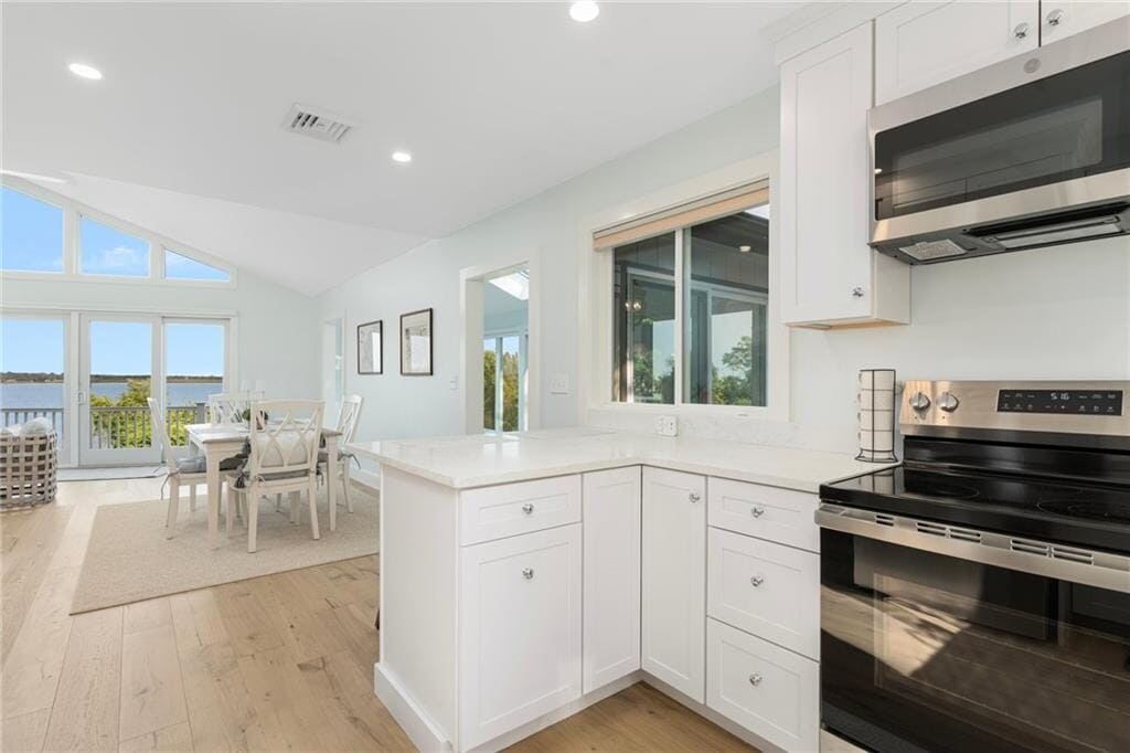 JUNE 2026: Experience coastal living at its finest in this beautifully renovated waterfront home on prestigious Indian Avenue in Portsmouth. Perched above the Sakonnet River with sweeping,unobstructed views,this sun-drenched property offers modern comfort with timeless New England charm. Upstairs,an open-concept living and dining space showcases breathtaking water views through walls of glass,seamlessly connecting to a spacious deck – the perfect spot for morning coffee or sunset entertaining. The sleek,updated kitchen and open flow make this an ideal space for gatherings. Also on the main level is a bright guest bedroom and a full bath. Downstairs,you'll find a flexible office space,a laundry area,and two generously sized bedrooms. The second bedroom features an en suite bath,while the primary suite includes a private dressing area,full bath,and serene water views that greet you each morning. Set on a gently rolling lawn that leads down to the water’s edge,this home includes a one-car garage and additional off-street parking for four vehicles. Enjoy this seasonal retreat that blends style,serenity,and an unbeatable location. Also available July and Aug 2026 @ $25K/mo.