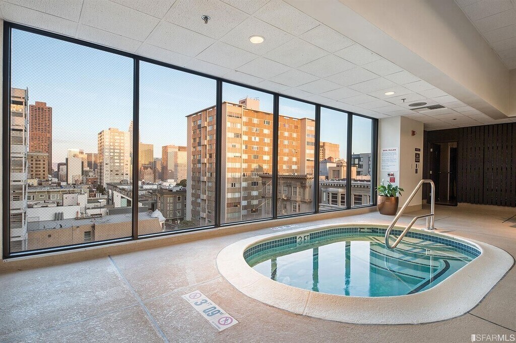 Experience refined luxury at the top of Nob Hill in this impeccably renovated designer condominium at the prestigious Gramercy Towers. Blending modern comfort with timeless elegance, this residence captures sweeping southern vistas and the quintessential San Francisco skyline. Gramercy Towers amenities include a heated indoor pool and sauna with huge windows and a retractable, dome roof; fitness center; sauna, spa. Residents also enjoy a reserved garage parking space for an additional fee, and high-speed Internet, all utilities and 24-hour security/doorman. This unit features the following: ~ 8th Floor unit in a 16-story elevator building ~ Excellent natural lighting, southern exposure ~ Fantastic City Views! ~ Hardwood floors ~ Floor to ceiling windows ~ Recessed lighting ~ Double-insulated, soundproof walls and ceilings ~ Built-in speaker system ~ Automatic dual day/night blinds ~ Remodeled kitchen with stone countertops, state of the art appliances and custom cabinetry ~ Open floor plan - living/dining combo ~ Sleeping alcove with built-in custom cabinets and cedar lined California closets ~ Remodeled bathroom with marble shower, a Toto toilet, towel warmer and a tall mirrored medicine cabinet ~ Garage parking available for an additional fee directly through the building ~ Water, garbage, electricity, heating, internet all included in the rent