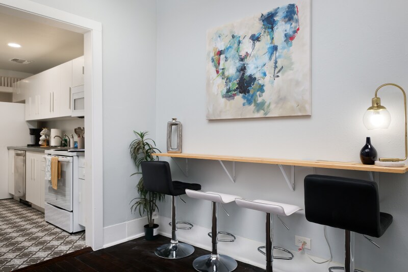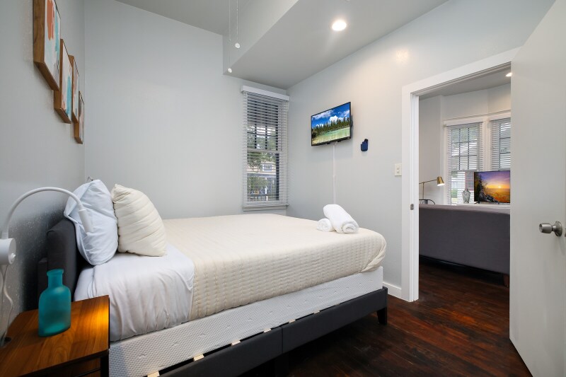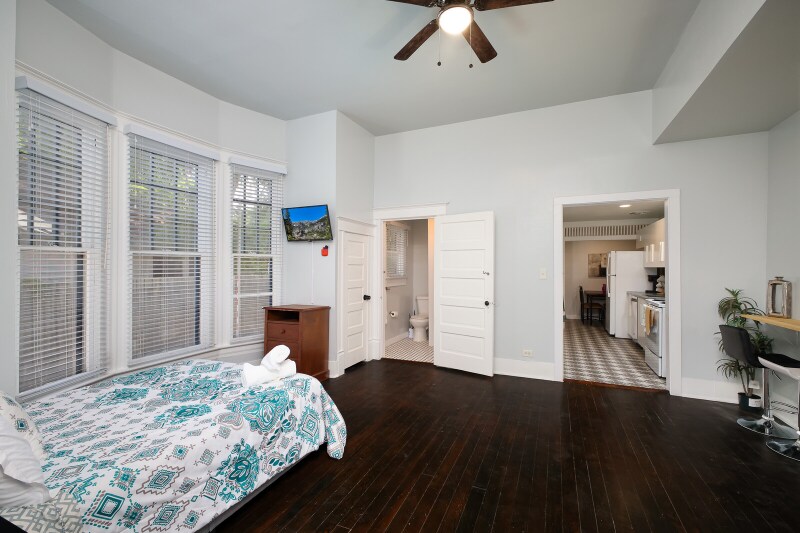 Property Id: 1955960 Lavaca Luxe Retreat is a furnished 1-bedroom, 1-bath loft offering historic charm and modern convenience in San Antonio's vibrant Lavaca district. Perfect for executives, relocating professionals, or ALE/insurance housing, it's just steps from the Riverwalk, Convention Center, Alamodome, and Towers of the Americas. The spacious living area features elegant décor, plush seating, and a smart TV, while the modern kitchen is fully equipped for home cooking. The bedroom offers a plush bed, smart TV, and generous storage to ensure comfort during extended stays. An updated bathroom with sleek finishes adds to the convenience. Enjoy a private outdoor patio, fast Wi-Fi with dedicated workspace, in-unit washer/dryer, and central heating and air. Designed for stays of 30+ nights, this home delivers comfort, flexibility, and an unbeatable downtown location for corporate or relocation housing.