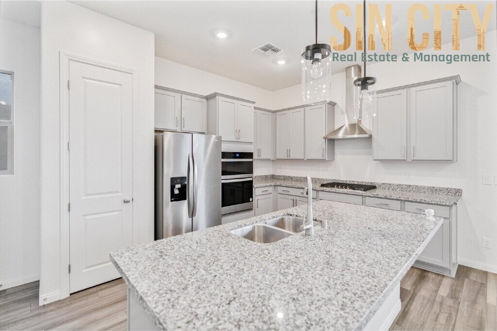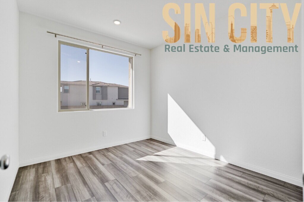 Built in 2024, this modern 4-bedroom home offers a smart, open layout with a full bedroom and bathroom downstairs. Enjoy mountain views from your balcony and the convenience of a 2-car garage with built-in shelving for added storage. Tankless water heater for energy efficiency. All appliances are included! The backyard is designed for easy living with low-maintenance landscaping and a covered patio—perfect for relaxing or entertaining. Schedule your showing today before it’s gone.All Sin City Real Estate and Management LLC residents are enrolled in the Resident Benefits Package (RBP) for $45.00/month which includes liability insurance, credit building to help boost the resident’s credit score with timely rent payments, HVAC air filter delivery (for applicable properties), and much more! More details upon application (included in rent) Sin City Real Estate and Management LLC B.1003001.LLC Move in fees: First Months Rent Security deposit $175 Lease prep fee