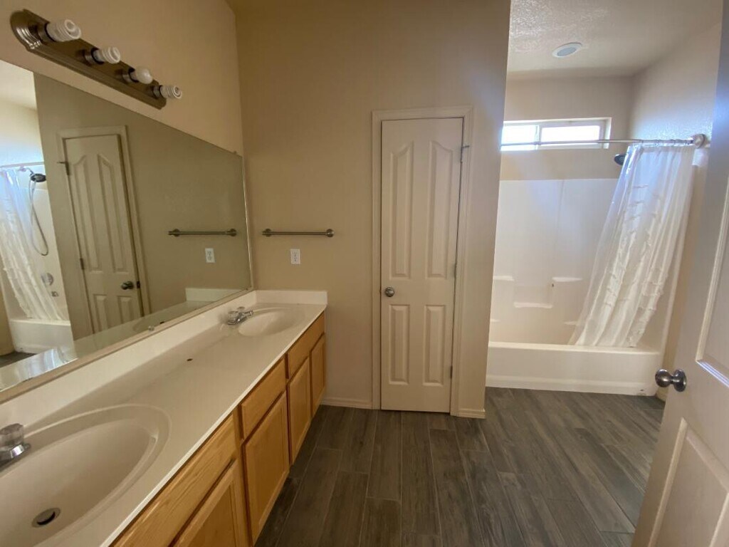 Beautiful Northeast home in Mesquite Hills. convenient to both Fort Bliss and McGregor range. Built in 2007, features 3 bedrooms, 2 full baths. Complete updated stainless steel kitchen appliance package. Master bedroom has walk-in closet, garden tub and separate shower, his and hers sinks. Large bedrooms with plenty of closet space. Indoor laundry room with washer and dryer included. Carpet only in bedrooms rest of home is all ceramic tile. 2 car garage. Covered patio, good size back yard with maintenance free artificial turf and storage shed. Refrigerated air-conditioning. PMI residents are enrolled in the Resident Benefits Package (RBP)which includes HVAC air filter delivery, utility concierge service making utility connection a breeze during your move-in, our best-in-class rewards program, & more! With renters’ insurance.