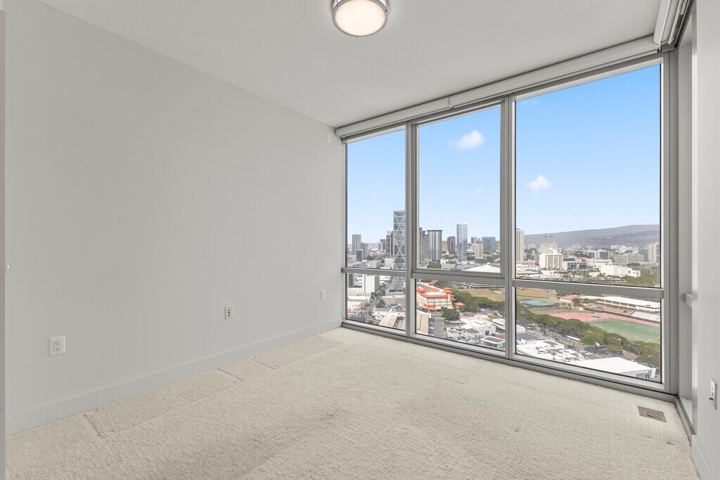 2 bedroom 2 bathroom 2 parking stalls with storage cabinet at the luxurious Secured Building with open lanai and breathtaking ocean view though floor to ceiling windows. and authomatic shades for your convenience. The unit is unfurnished .Waihoua is one of Kakaako's cond .Close to Ala Moana Shopping Center and Ala Moana Park. No pet No Smoking , Renter Insurance required,