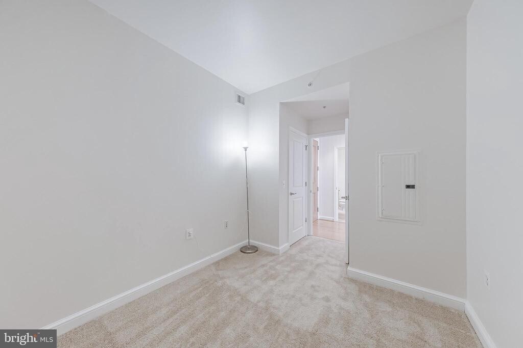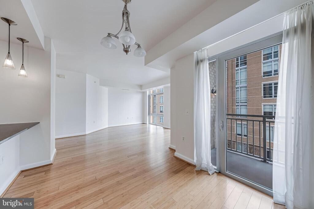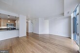 AVAILABLE FOR IMMEDIATE MOVE-IN! Light-filled 1 bedroom plus den/possible 2nd bedroom with 2 full baths in Midtown at Reston Town Center. Beautiful bamboo hardwood flooring throughout foyer, hallway, living room, and dining room. Kitchen overlooking living/dining area offers granite countertops, breakfast bar, and stainless steel appliances. Spacious living room with floor to ceiling windows. Separate dining room with access to 2nd balcony. Primary suite features ceiling fan, closet with custom built-ins, and access to private balcony. Spacious primary bath with dual vanities. Convenient office/possible 2nd bedroom with closet and adjacent 2nd full bath. Both bedrooms have new carpet. Entire unit just repainted. Full sized washer/dryer in unit. 1 garage parking space included. Other garage spaces are available for lease within the building.