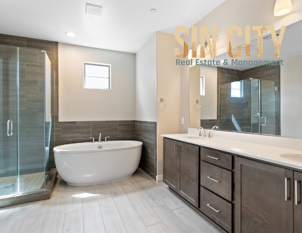 This stunning 4-bedroom, 3.5-bath home in Lake Las Vegas offers luxury living with a 3-car garage. The first floor includes a private bedroom with an en suite, a gourmet kitchen with an oversized island and sleek charcoal cabinetry, and modern tile flooring throughout. Upstairs, the oversized bedrooms provide plenty of space, while the primary suite showcases a spa-like bathroom with a custom tiled shower and a freestanding tub. Additional highlights include a beautifully landscaped backyard and a wonderful lounge area. Built with upgraded features and designed similar to our model home, this property combines comfort, style, and sophistication in one of the most desirable communities in Lake Las Vegas. All appliances are included! Move in ready! All Sin City Real Estate and Management LLC residents are enrolled in the Resident Benefits Package (RBP) for $45.00/month which includes liability insurance, credit building to help boost the resident’s credit score with timely rent payments, HVAC air filter delivery (for applicable properties), and much more! More details upon application Sin City Real Estate and Management LLC B.1003001.LLC Move in funds: First Months Rent Security Deposit $45 Resident benefit package (Included in Rent) $175 lease prep fee
