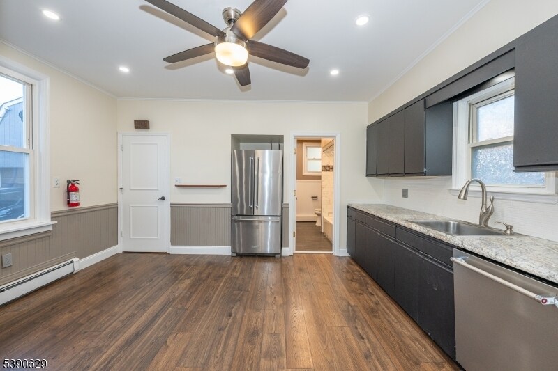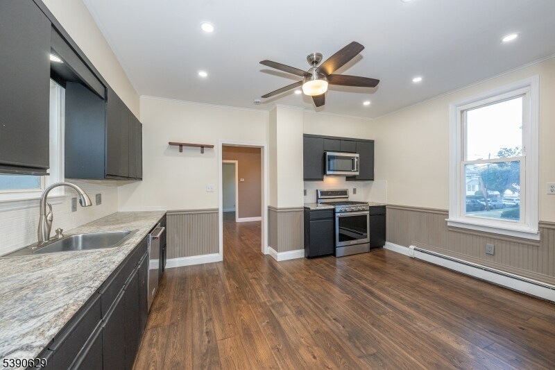 Discover your new home in Nutley! This charming one-bedroom, one-bathroom apartment in a multi-family house is freshly painted and updated. Enjoy the elegance of laminate wood floors throughout and the convenience of a large eat-in kitchen with stainless steel appliances. The spacious walk-in closet provides ample storage, and off-street parking ensures easy access. You'll also love the convenience of in-unit laundry. Ideally located near shops, restaurants, and parks, this apartment offers convenient transportation options to New York City, making your commute a breeze. Schedule a viewing today.