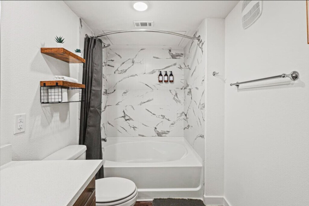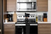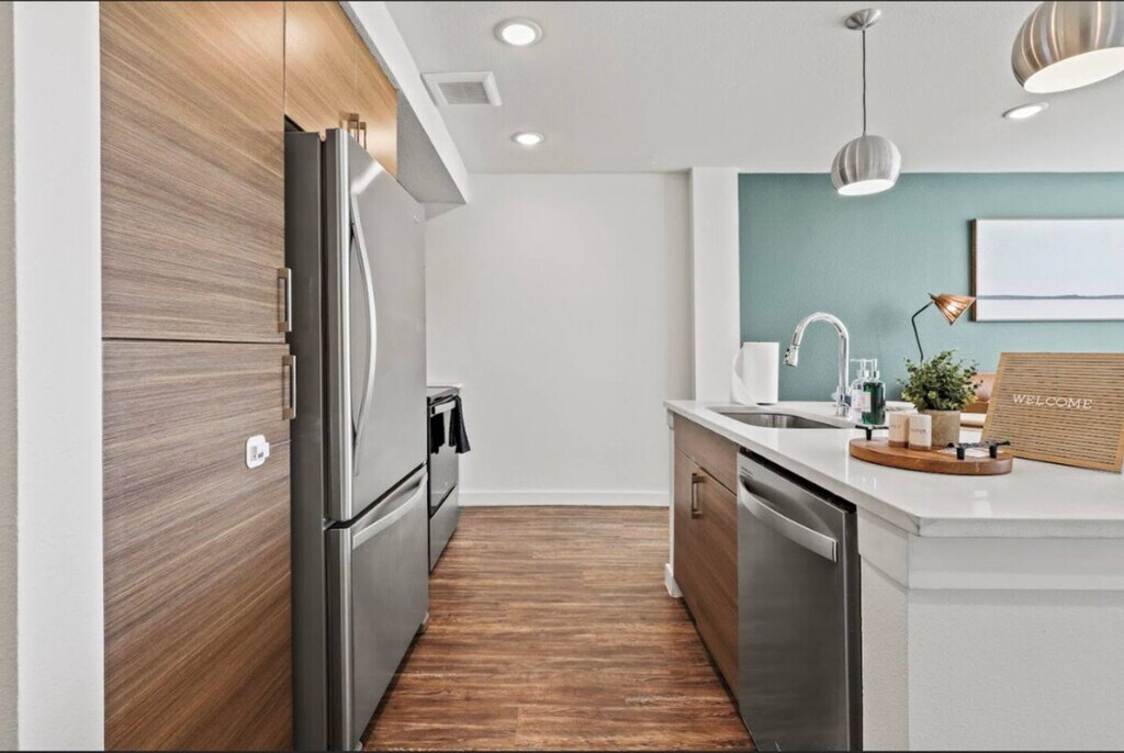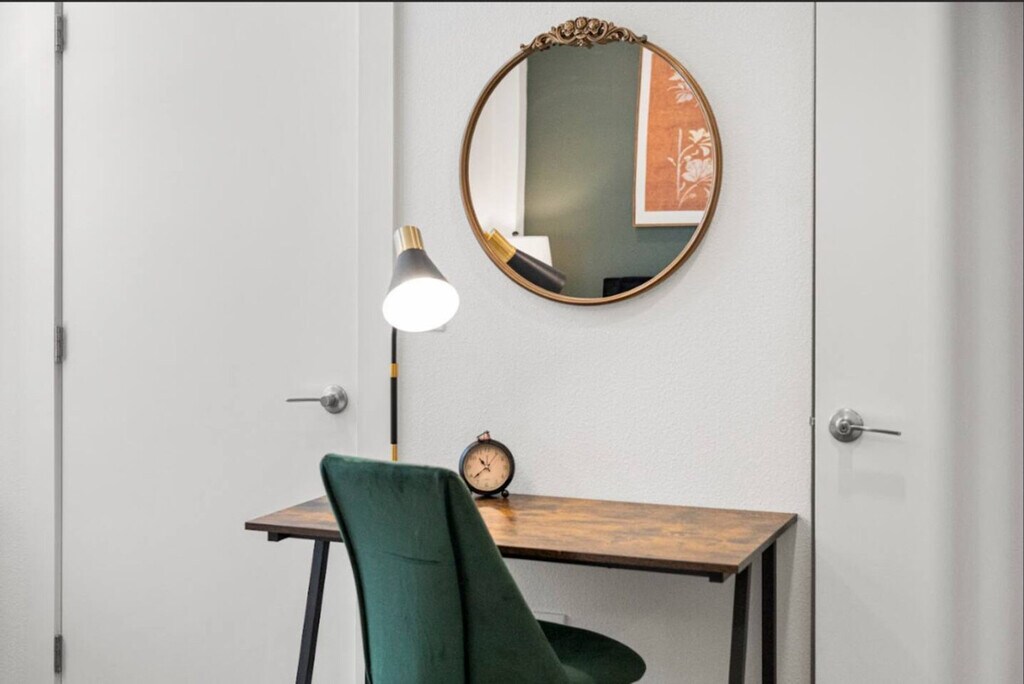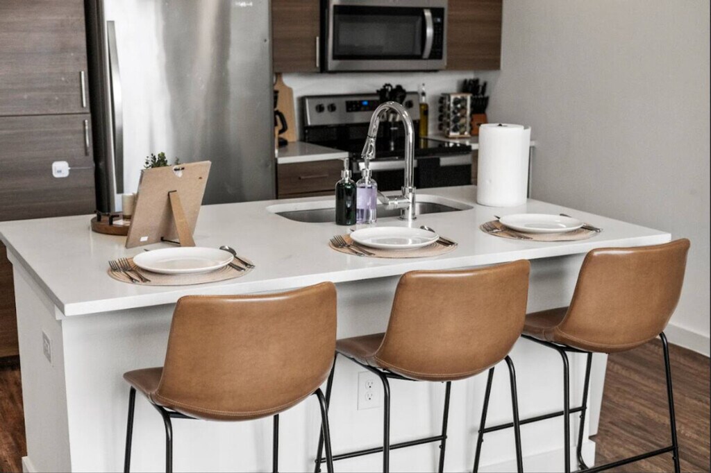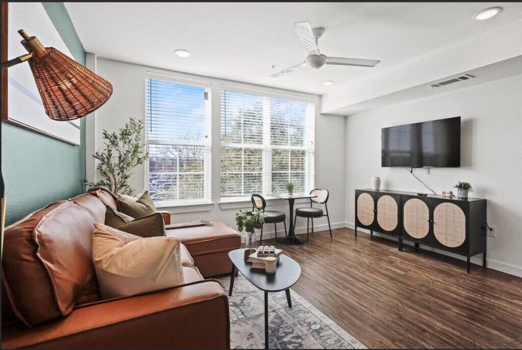 Feel at home in this stylish first-floor apartment in Dallas, designed for comfort and convenience. This modern retreat is perfect for professionals, families, and travelers. This apartment features a fully equipped kitchen with a stove, oven, microwave, fridge, dishwasher, coffee maker, and toaster. The cozy bedroom includes a queen-size bed and a comfortable sleep sofa. For your convenience, there is an in-unit washer and dryer with essential supplies. Enjoy entertainment with the smart TV and rest assured with the smoke and carbon monoxide alarms. Additional comforts include air conditioning, soft bed linens, extra pillows, and towels. Enjoy access to all building amenities, including the rooftop deck and dog park. Secure parking is available with one garage spot, remote, and hang tag included. Located in the vibrant Bishop Arts District of Dallas, this apartment is celebrated for its small-town ambiance and artistic flair. The area boasts locally owned boutiques, diverse restaurants, cozy coffee shops, art galleries, and theaters. Public transportation is readily accessible, with convenient access to buses and light rail lines, including the Red and Blue Lines, which can take you to popular destinations like Downtown Dallas and Deep Ellum. Ride-sharing services are readily available throughout the area for quick and easy transport. Smoking indoors will result in a $500 fine. Evidence of unregistered pets will result in a $500 fine. There is a $1000 surcharge charged to groups that are deceitful about the use of the unit. Guests partying will be asked to vacate the property immediately without refund. A surcharge of $350 per undeclared guest per night will be applied for each unapproved guest. Under no circumstances is the security camera to be removed or disabled in any way. Any cameras removed or disabled will be considered a violation of the booking and a fine of $500 is applicable. A $50 per hour penalty is applied if guests fail to check out by 10 am. Guests looking to extend their stay are welcome to do so, subject to availability. Please note, we require a 48-hour notice minimum prior to checkout time to extend without penalty. All extension requests that are between 24-48 hours before checkout time are subject to an additional 50% of the cleaning fee to reschedule cleaners. Any extension request that is less than 24 hours before checkout time will be subject to an additional cleaning fee. Please note that all additional fees must be paid first before an extension is confirmed. Includes fast Wi-Fi and Ethernet, along with a dedicated workspace. [SI]