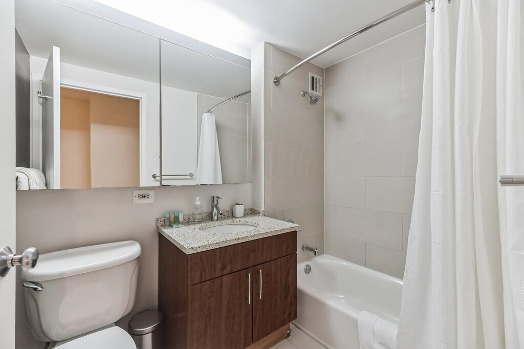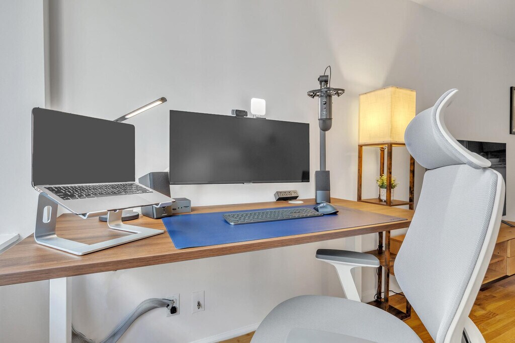 Feel at home in this spacious 1-bedroom apartment in the heart of Manhattan's historic Chelsea district, nestled on a quiet block between 6th and 7th Avenues. The building has elevators and a 24-hr door attendant. This fully furnished apartment is specifically designed for remote work and features a queen-size mattress, a full bathroom, and a fully equipped kitchen with stainless steel appliances (including dishwasher) and a breakfast bar. Amenities include hardwood flooring, spacious closets, laundry onsite, a fitness center, a community lounge, and a rooftop sundeck with city views, a TV, and a BBQ. The kitchen is stocked with a Keurig coffee machine and pods. Professionally managed parking is available onsite (not included). You'll be steps from world-class shopping, dining, and entertainment, and within walking distance of famous sites such as The Highline, Madison Square Garden, The Whitney Museum, and Broadway. This unit is located near a busy street, and traffic noise may be significant. The building is currently undergoing renovation and is expected to continue until January 2026. Internet speeds are not guaranteed and may fluctuate based on your computer model and the router location. Includes private high-speed internet, an Uplift standing desk, an Uplift work chair, a 34-inch ultra-wide Samsung monitor, a Blue Yeti microphone, a Logitech webcam, Logitech computer speakers, a key light, a monitor light, a green screen, a Logitech keyboard, a Logitech mouse, a laptop stand, and a TOTU 16-in-1 Triple Display USB-C 3.1 Docking Station. A laptop computer is not included. [SI]