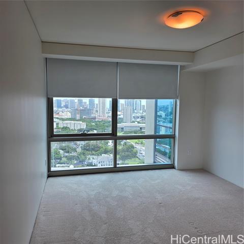 2 Bedroom + Den, 2 Bathroom, 2 Parking + 1 Storage unit Penthouse & corner unit on the 39th floor! Offers breathtaking floor-to-ceiling panoramic views of the city, skyline and ocean. This beautifully maintained home features Viking stainless steel appliances, motorized blinds, Samsung washer/dryer, wine fridge, and 4 Mitsubishi split A/C units in every room + living room! Dishwasher, water heater and A/C units were all replaced in 2024 and the microwave, washer/dryer and all carpets were replaced in 2025! The building amenities deck underwent major renovation in 2024 including movie theatre, sound proof music rooms, party room, fitness center, BBQ cabanas, pool and more! Don't miss your opportunity to live looking over Honolulu's skyline in this beautifully maintained penthouse. This unit is unfurnished.