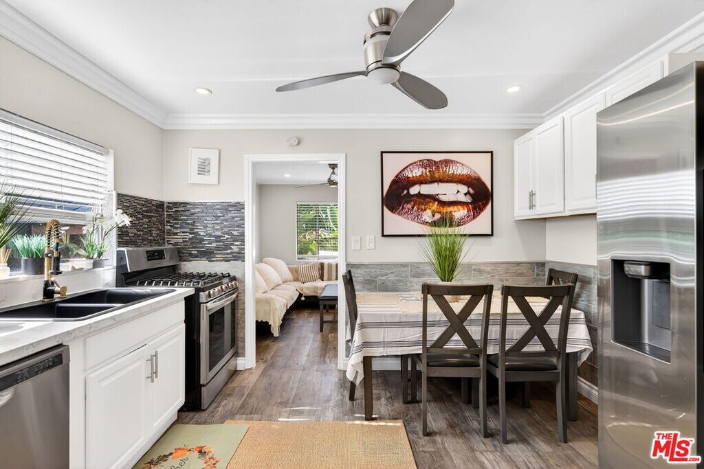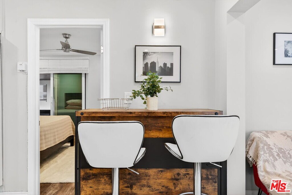 Fully furnished 1 bedroom, 1 bathroom residence offering privacy, style, and a move in ready lifestyle. This thoughtfully designed home combines modern finishes with warm, inviting spaces, ideal for anyone seeking comfort and convenience.The living area features contemporary furnishings, wide plank style flooring, and abundant natural light. A sliding glass partition adds architectural character while allowing flexible use of space. The kitchen is well appointed with updated countertops, modern appliances, ample cabinetry, and a dedicated dining nook, all included as part of the furnished lease.The bedroom is spacious and serene, complete with stylish dcor and direct access to the exterior, creating a private retreat feel. The bathroom has been updated with sleek tile work and modern fixtures for a clean, refreshed look.Additional highlights include in unit laundry, generous storage, and a fully furnished setup so you can settle in immediately with ease. A rare opportunity to lease a turnkey furnished home with personality and comfort built in.