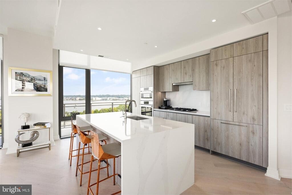 NEW PRICE!! Enjoy Potomac River views through floor to ceiling glass walls in every room in this luxurious condo in MUSE, the award-winning condominium located in the Arts and Cultural District in North Old Town Alexandria. This second floor condo presents an open, contemporary floor plan with 9' ceilings and 7.5 wide engineered wood floors throughout. The expansive great room anchors this split floor plan and provides access to the balcony overlooking the river and green space along the waterfront. State-of-the art design includes a sleek gourmet kitchen, Snaidero Italian cabinets, quartz counter tops and panelized Bosch appliances surrounding a generous white quartz waterfall island with built-in wine fridge. On the right is a primary bedroom enhanced by a spacious spa-like bath featuring Calacatta porcelain tile, Waterworks fixtures, two walk-in closets, and a private water closet. Across the living room guests will enjoy a private second bedroom along with a second full bath and laundry room. Two garage spaces located conveniently close to the elevator are included on G-2. Electricity and water/sewer are separately metered and paid by tenant. The penthouse level offers a stunning roof top deck with panoramic views of the river, DC, monuments and VA/MD skylines and multiple seating areas and grilling stations along with a state of the art fitness center and yoga studio. The Watercolor Lounge offers kitchen facilities, a fireplace and multiple seating areas from which to enjoy the stunning views. But there is more! MUSE is located along the Mount Vernon Trail making it easy to enjoy on foot or on bike and is the center of Alexandria’s new Arts and Cultural District anchoring the home of the Arts League of Alexandria. The NE quadrant of Old Town Alexandria offers the upcoming Metro Stage Theatre, walking trails, retail shops, boutiques, green spaces and waterfront parks. Popular eateries include Jula's on the Potomac, Oak Steakhouse, St. Elmo's Coffee, Hank's Oyster Bar and TJ Stones. Nearby grocers include Trader Joe's and Harris Teeter. Minutes away are the Pentagon, Reagan National Airport, Metro, VA Techs' new campus and Amazon’s HQ2 , DC, National Harbor and MGM Grand. Everything you could hope for is located in one dynamic location."