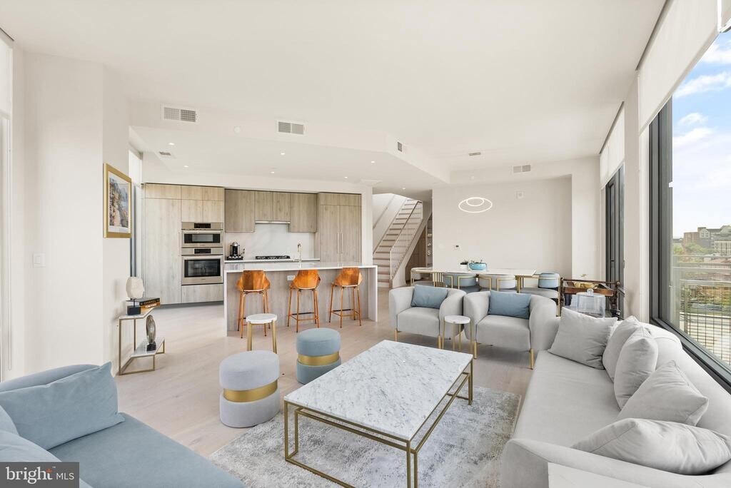 Executive living at its finest! Exquisite, two-bedroom condo on the top floor of Muse Artful Condominiums in North Old Town Alexandria. Spectacular, panoramic views from every room includes the Potomac River , Washington, D.C. skyline, the Capitol and more. To the south, you see Old Town Alexandria, MGM Grand, Woodrow Wilson Bridge, and National Harbor. Two balconies, floor-to-ceiling windows (with top-grade window treatments), cathedral ceilings, gourmet kitchen, PLUS steps up to the loft and your very own large, private, rooftop garden (maintained by the condo association) where you can relax, barbecue, and enjoy the fresh air and spectacular views. Building includes fitness center and entertainment center that you can use or reserve (for a fee) to throw a private party. Just a few blocks to the heart of Old Town and a few feet to the park on the river. An elegant, unique property.