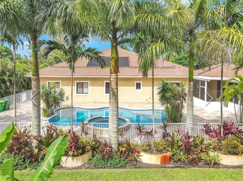 Magnificent 7-bedroom, 7-bathroom Custom Estate mini mansion in Plantation Acres, built 2017 Spanning over 8,400 sq ft on 1.07 Acres, 12 ft ceilings, Spacious layout offers both style and functionality. White glass & porcelain tile flooring, electric shades, LED Lighting, Impact windows, Solar power and many smart home upgrades. Custom kitchen, bar and hangout areas to meet your hosting needs. Master suite features a sitting area with a wet bar, huge walk-in master closet and spa like bathroom. Media room plus a separate 1-bedroom guesthouse & Covered inner Courtyard in addition to an enormous enclosed sunroom. Custom pool & spa deck alongside a large enclosed backyard with mature fruit trees.. This property embodies luxury, efficiency, and modern living, making it the perfect place to call home.