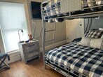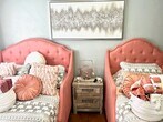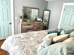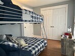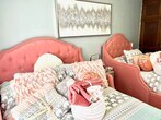 Oh the glamor! Our four-bedroom (sleeps ten) Morrison Mansion is a historic home that just goes on for miles. At 2,100 square feet of living space with four bedrooms and six separate sleeping spaces including upper and lower sunroom/patio areas with daybeds, this home can work for almost any family or group of travelers. The hardwood floors of this historic home were completely restored to their original grandeur. A large harvest dining table in a full-sized dining room is set under a gorgeous chandelier. The kitchen has quartz countertops, with a gold inlay tile backdrop and a gold farmhouse sink. Yes to a dishwasher, pantry area, upgraded appliance package, and eat-up island with modern stools. The living room area features a huge modular sectional couch, 65? TV, electric fireplace, and a regal set of stairs leading to the upper level. The four bedrooms upstairs include an amazing master en suite with a fainting couch, king-sized bed, full bedroom set, and large TV. This master bedroom is as big as two regular-sized bedrooms. Our second bedroom features the most adorable armchair matching beds, including a twin and a full. Bedroom number three includes extra long bunk beds with an additional walk-through sitting upper enclosed porch area that has a twin daybed. The fourth bedroom includes another king bedroom set and a walk-in closet. Finally, on the lower level, the entry area has a large enclosed porch with an additional daybed. In total, we have two king beds, and six additional beds including the day beds.