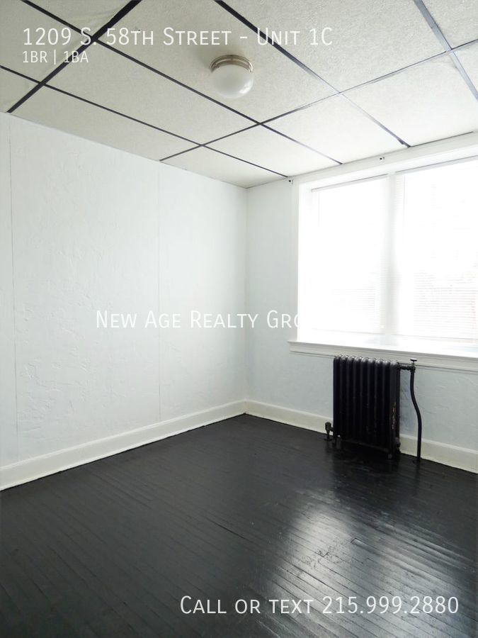 This is a spacious 1 bedroom, 1 bathroom apartment located near Sherwood Park in the Cobbs Creek neighborhood of Philadelphia. It features hardwood floors, big windows, and radiant heat. The kitchen has a gas stove and refrigerator. The bedroom is located to the left and is large. The bathroom is fully tiled with a tub and storage. This unit has radiant heat. This property is located very close to the Cobbs Creek Park, stores and shops on Baltimore Ave, are many public transportation stops. There is a laundromat one block away from the property. Tenants are responsible for gas, electric and flat fee of $25 for cold water. Landlord pays for hot water. Tenant is responsible for renter's insurance. Pet Policy: Cats OK with $300 non refundable pet fee, dogs not allowed. All New Age tenants will be automatically enrolled in a Resident Benefits Package (RBP) for $25 per month, which includes $5k in property damage reimbursement, credit building through timely rent payments, a resident rewards program, and so much more! These benefits are designed to improve your living experience and put money back into your pockets. All information about this package can be found at