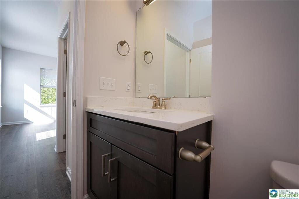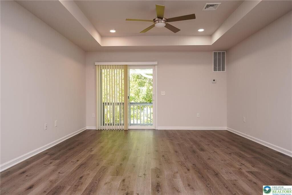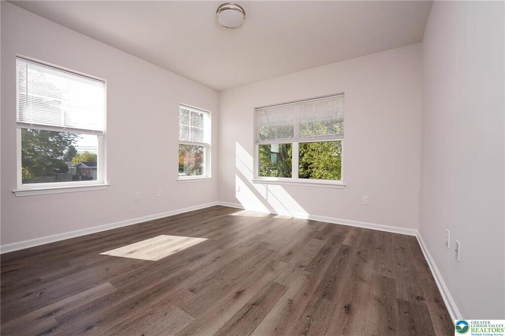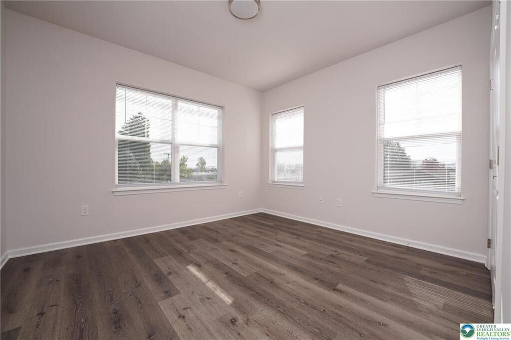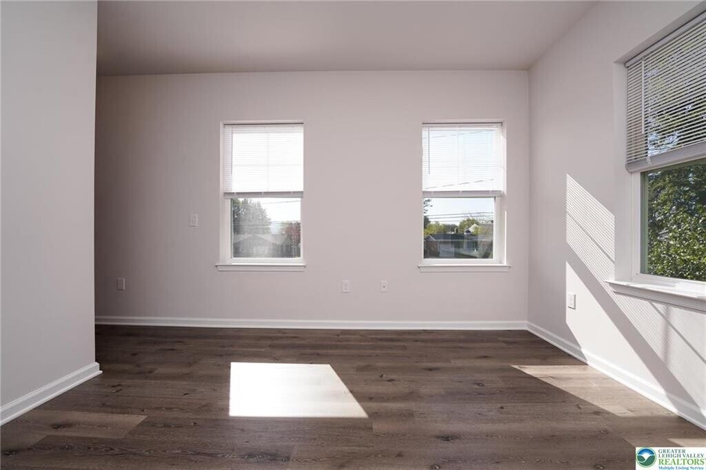 Offering 6 or 12 month lease! 6th month lease at increased rate. Modern-luxury 2-bedroom 2 full bathroom available #304 (3rd Floor) now. Equipped with state-of-the-art amenities; luxury vinyl plank floors, custom kitchen soft close cabinets/drawers, quartz counters, tile backsplash, stainless steel appliance package; full size refrigerator, self-cleaning oven, dishwasher, microwave. Ample room sizes, view of South Mountain, individual laundry w/ Samsung washer & dryer. Living room features walk out patio/balcony. Built in monitoring system and key less entry. High efficiency heat pump w/ central air. Off-street parking with EV charging available. Proximity to Downtown Bethlehem, walking distance to shopping, dining. Tenant responsible for electric, quarterly water/sewer. Lawn care, snow removal, trash collection included in rent. Applicants must have 685+ credit score and 2.5-3x in income per rent. No pets allowed.