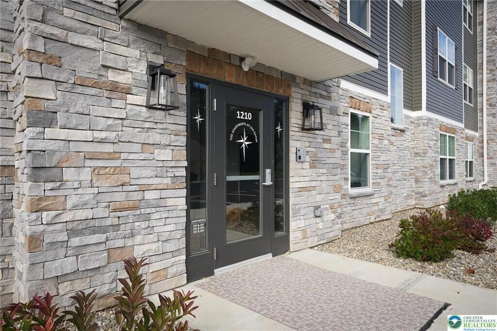 Offering 6 or 12 month lease! Modern-luxury 2-bedroom 2 full bathroom available #204 (2nd Floor) now. Equipped with state-of-the-art amenities; luxury vinyl plank floors, custom kitchen soft close cabinets/drawers, quartz counters, tile backsplash, stainless steel appliance package; full size refrigerator, self-cleaning oven, dishwasher, microwave. Ample room sizes, view of South Mountain, individual laundry w/ Samsung washer & dryer. Living room features walk out patio/balcony. Built in monitoring system and key less entry. High efficiency heat pump w/ central air. Off-street parking with EV charging available. Proximity to Downtown Bethlehem, walking distance to shopping, dining. Tenant responsible for electric, quarterly water/sewer. Lawn care, snow removal, trash collection included in rent. Applicants must have a good credit score and 2.5-3x in income per rent. No pets allowed.