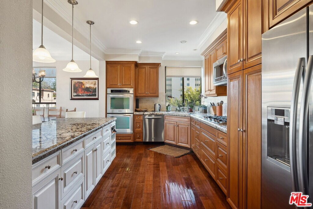Welcome to this beautiful Brentwood House 2bd/2ba Condo! This bright, south/east-facing, corner unit has an updated kitchen with breakfast bar that is open to the living room / dining area. The spacious primary bedroom has a walk-in closet and en suite bath. In-unit laundry and easy to clean tile floors make chores a breeze! Brentwood House is located in close proximity to many fantastic restaurants and boutique shops all along San Vicente Blvd - from the tried and true of Jon & Vinny's, Katsuya, Toscana and Baltaire to newly opened LaLa Land! Vicente Foods, Whole Foods, and the Brentwood Farmer's Market every Sunday provide many options for fresh produce, etc. The rental price includes hi-speed internet and basic cable. Enjoy the Gas fireplace for cozy winter nights and a sparkling pool and roof-top sun deck for year-round relaxation. Unit is available either partially furnished (living room & primary bedroom) or can be completely unfurnished. MLS# 25631937