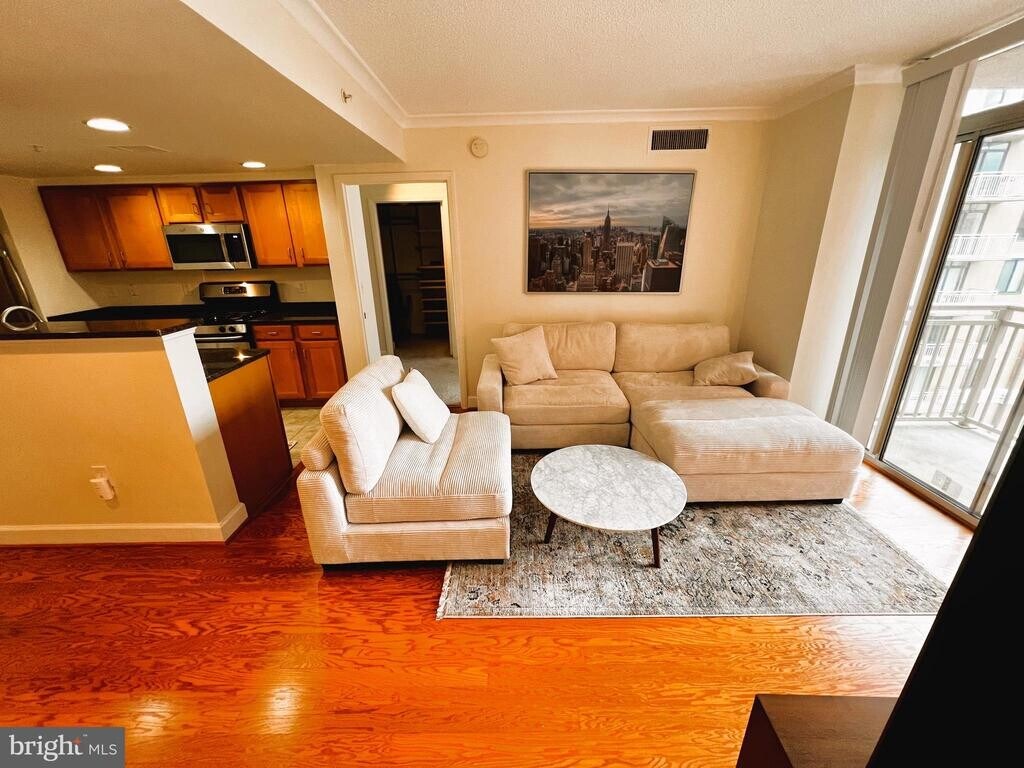 Light & Bright 2 Bdr Condo with 1.5Bth. With Great Views. Open Floor Plan With a Modern Open Kitchen Including Granite Tops, Maple Cabinets, Stainless Steel Appliances, Tile Floor & Kitchen Island. Professionally Painted, New Carpet, Master Bed Has a Large Custom Walk-in Closet & Huge Full Bath. Dining Room Can be Used as a Den. Wall of Windows to Allow Maximum Light & a Large Balcony. Underground Garage Parking. Building Amenities: Double Outdoor Pool & a Beautiful Party Room. Across the Street From Clarendon Metro Station. Walk Around to Shops, Restaurants, Apple Store, Traders Joe, Whole Foods & Much More... Available Furnished & Unfurnished. Master Bed is Not Included.