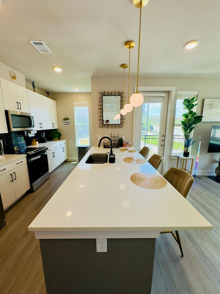 The advertised rate of $3,667/month is the lowest available price, based on a 30 day(s) stay with a move-in date of July 6, 2026. Rates vary depending on the duration of stay, season, and other parameters. For exact pricing and additional pricing components, please visit our website and enter your desired move-in and move-out dates. The rate is applicable when billed upfront; it can be higher if billed in multiple payments. Enjoy a relaxing stay and feel at home in this spacious 2-bedroom Austin getaway that comfortably sleeps 8, perfect for families and friends. This modern apartment blends comfort, space, and convenience. Each of the two large bedrooms features two comfy beds, plus there is a sofa in the living room for extra sleeping space. The living room is bright and welcoming, with a smart TV and cozy seating. The fully equipped kitchen features stainless steel appliances and all the essentials for cooking. Enjoy access to a resort-style pool and sundeck, game room with activities for all ages, coworking lounges and quiet work areas, EV charging stations, pet spa, car wash, and outdoor BBQ grills and firepit lounges. Located in Tech Ridge, one of North Austin’s most convenient and connected neighborhoods, you're just minutes from The Domain, Austin’s top spot for shopping, dining, and nightlife, Walnut Creek Park, great for hiking, biking, or a picnic, Topgolf, AMC Tech Ridge, and other fun local hangouts, and walkable favorites like MOD Pizza, In-N-Out, and Little Woodrow’s. Tech Ridge has a relaxed, welcoming feel, yet it's close to everything you could need, making it perfect for both short and extended stays. Includes a dedicated workspace and high-speed Wi-Fi, making it easy to work remotely or stay connected. [SI]