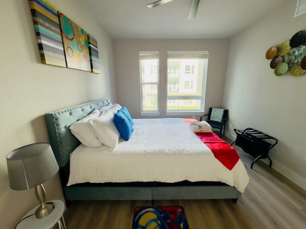 The advertised rate of $3,238/month is the lowest available price, based on a 30 day(s) stay with a move-in date of May 11, 2026. Rates vary depending on the duration of stay, season, and other parameters. For exact pricing and additional pricing components, please visit our website and enter your desired move-in and move-out dates. The rate is applicable when billed upfront; it can be higher if billed in multiple payments. Welcome to this vibrant and colorful apartment in North Austin, perfect for work trips or family getaways! Feel at home in this spacious apartment. This apartment features comfortable bedrooms with queen beds and a cozy sofa, providing plenty of room to relax or spend time with family and friends. The fully equipped kitchen makes cooking easy and enjoyable, while a quiet workspace offers a perfect spot to focus or plan your day. Thoughtful details throughout create a warm and welcoming atmosphere. Amenities include a sparkling pool, relaxing hammocks, a game room, luxury lounges, outdoor grills, EV charging stations, and pet and car wash stations. Free on-site parking and EV charging stations are available for your convenience. Located in North Austin’s Tech Ridge, this apartment is near The Domain, Q2 Stadium, Walnut Creek Park, and great dining spots. You’re just minutes away from The Domain, Austin’s top spot for shopping, dining, and nightlife, and close to Walnut Creek Park, a local favorite for hiking, biking, and relaxing in nature. Other nearby highlights include the YMCA North Austin Community Rec Center, Katherine Fleischer Park, sand volleyball courts, and Pfluger Park. Major roads like I-35 and Highway 183 are just minutes away, making it quick to get downtown, to the airport, or to nearby cities like Round Rock and Pflugerville. The area is served by several CapMetro bus routes, providing reliable and affordable transportation around Austin—including to The Domain, downtown, and UT Austin. Tech Ridge is a walkable and bike-friendly neighborhood. Staying at Tech Ridge means you're well-connected and getting around is easy! Includes a quiet workspace. [SI]