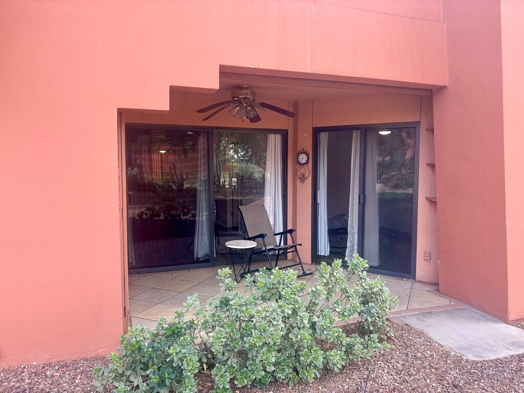 Beautiful ground level one bedroom condo. Roomy 850 square foot floor plan. Covered patio with cactus garden and golf course views, far away from traffic noise. Spacious kitchen with plenty of cabinet and counter space. Very large bedroom features a private bath, vanity and walk in closet. Anasazi Village offers elevator accessible buildings, 22+ acres of lush greenery, cactus garden and 5 resort-style pool and spa areas with rock formations & waterfalls.The clubhouse offers two fitness centers, media center, billiards room and gathering rooms for planned activities. Walk to the new PV development, Stonecreek Golf Course, Target, Costco, Dutch Bros and dozens of upscale shops and restaurants. Great access to Loop 101 and I-51. Concrete block construction, not wood frame for lower electric bills. Fully refundable $1000 security deposit and $225 nonrefundable cleaning fee. Application fee is $75.
