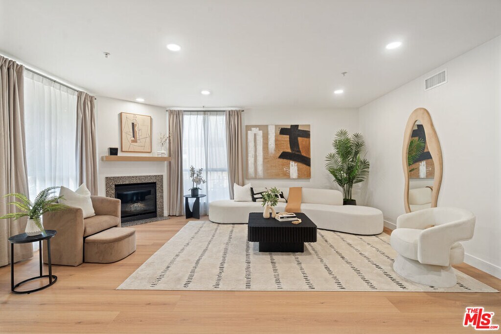 This spacious and stylish 2-bedroom, 3-bath residence offers approximately 1,629 square feet of well-designed living space in a prime West LA location. The open-concept layout features wide-plank flooring, recessed lighting, and a large living room anchored by a cozy fireplace with direct access to a private patioperfect for indoor-outdoor living. The chef's kitchen is equipped with granite countertops, stainless steel appliances, ample cabinetry, and opens seamlessly to the dining area. Both bedrooms are generously sized, each with en-suite bathrooms and excellent closet space, including a walk-in closet in the primary suite. Additional highlights include in-unit laundry, central air and heat, and a well-maintained building with amenities such as a fitness center. Ideally located near shops, dining, and everything Westwood and Brentwood have to offer. MLS# 26648375