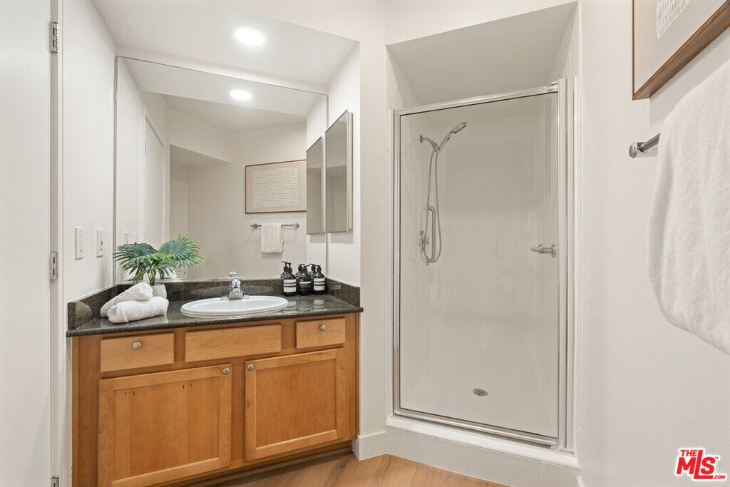Now's your chance to rent a 2-bdrm/2-bath 2nd floor, open plan condominium conveniently located in West Los Angeles just below Wilshire, west of Barrington. Steps from shopping & dining. Close to UCLA, Santa Monica, & the 405 & 10 Fwys. This spacious & bright condo has many upgrades & features. -Second floor, bright (SW corner) condo with granite-tiled entry. -Open floor-plan living area with large living room with gas fireplace, floor-to-ceiling windows, & dining area with sliding glass door to balcony. -Kitchen with granite counter tops & floors, plenty of storage space & eat-at bar. -All stainless steel appliances—refrigerator, professional-style gas range/oven, dish washer, & microwave. -Spacious primary bedroom suite with ample customized storage in walk-in closet. -Spa-like primary bathroom with tile throughout, double sinks, glass enclosed shower, & separate soaking tub. -Second bedroom suite on other side of condo with adjacent bathroom. -Laundry area with near new washer & dryer in unit off entry way. -Central A/C & heat -Hardwood flooring, recessed lighting, & freshly painted throughout -Two (2) assigned parking spaces (tandem) in a gated subterranean garage. -Controlled-access lobby with elevator; lushly landscaped common areas & courtyard. -Recreation/Fitness Room with well-maintained gym equipment. -Water/sewer, trash service & HOA dues are included. -Over 1,500 square feet. -$100 moving fee.