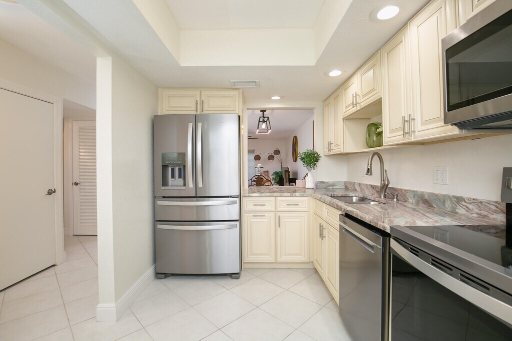 Escape to paradise in this completely remodeled,turnkey 2 bed / 2 bath condo just steps from the beach on beautiful Hutchinson Island. Luxurious quartz countertops,white cabinets,and new stainless steel appliances adorn the kitchen. Relax on the recliner sofa in the living room or retreat to the comfort of your spacious master suite. Enjoy your morning coffee and a good book in the fully enclosed Florida room. Just minutes to the beach,Jetty park,shopping,& great restaurants. Residents have access to the community pool,clubhouse,boat slips,fitness center,& much more! MLS ID R11126520