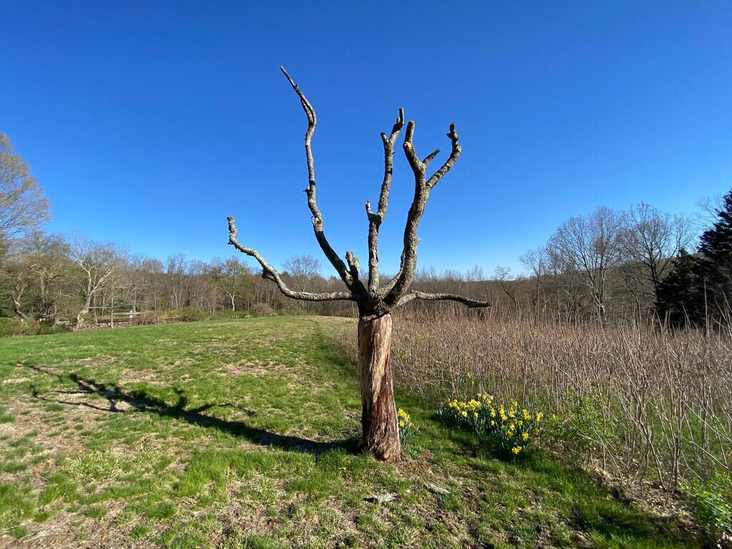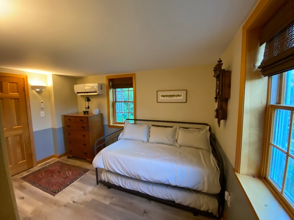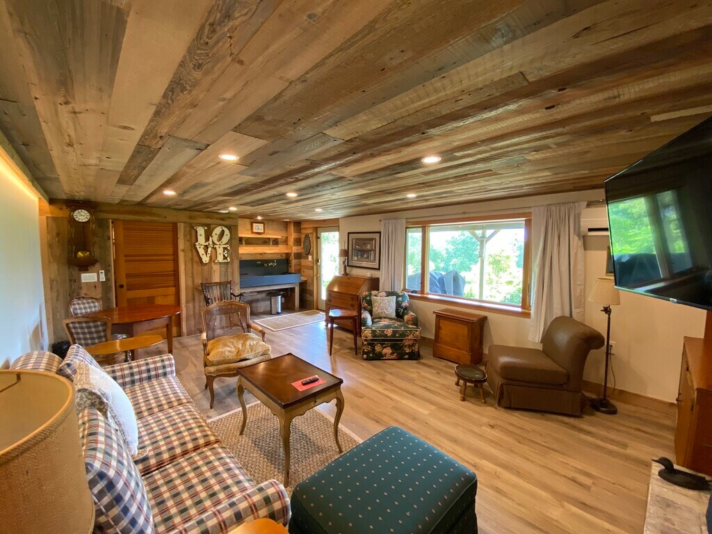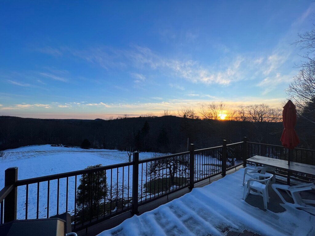 Location, Location, Location......with sweeping distant views towards Mt. Tom and the Litchfield Hills the Lookout offers tranquility, peace, and quiet to recharge, lounge or work remotely. Explore this park-like setting with mowed trails with great breezes and sun that drenches the vast open lawn and field with mature plantings and various fruit trees. Listen to the local sounds of the most spectacular birds that frequent the property within the surrounding stone walls. Hiking /biking await! Transport yourself to the Lookout , a park-like setting offering a fully furnished 3 bedroom, 2 bath home on 4.3 acres on the crest of Looking Glass Hill . The all-season home was thoughtfully renovated and fully furnished keeping the juxtaposition of a classic interior utilizing reclaimed wood finishes throughout to create a cozy , modern farmhouse feeling with updated bedrooms with memory foam mattresses, refurbished baths and closets complemented by warm LED recessed lighting throughout. Lounge on the deck and relax to the wonderful sounds of the local birds, otherwise peacefully quiet. Looking Glass Hill is a less-travelled road, 5 minutes drive from Bantam center and Bantam Lake. On the main level, the fully stocked chefs kitchen with classic pine/ hand painted cabinetry and granite countertops includes an electric stove/cooktop, new Stainless Steel LG refrigerator with ice-maker, Bosch dishwasher and all the chef amenities. An open floor plan from entry hall, opens to a breakfast bar, Kitchen, Living/ Dining space with central wood burning fireplace with 43" smart TV and Sonos playbar to stream your favorite tunes. In addition, the main floor has two bedrooms and a full bath with tub /shower combination, new quartz countertop with waterworks faucet and Toto toilet. Head outside to the new deck off the kitchen and enjoy the farmhouse table that seats 8 with umbrella overlooking the scenic property and views of Mt. Tom and beyond. A new gas grill sits on a raised deck with new composite decking and railings. On the lower level there is a third bedroom with trundle bed, full ensuite bath complete with large shower w/rain head and new Toto toilet with separate entrance. A marble hallway connects the laundry room and Family room areas. The family room is complete with an antique writer's desk w/storage drawers, sleeper sofa w/ memory foam mattress, card table and chairs, 50" smart TV with Sonos playbar with a central wood burning fireplace. Multiple rooms with space to work allow you comfortably work remotely as needed with excellent Wi-Fi especially with multiple users. The lower level has access to the slate walkway to the backyard. The heating and A/C are split systems 5 zones with the ability to control remotely at each location. For the children, we offer endless books, a crib some board games. A Solo Stove fire pit is available in the fall and winter months, guests provide the wood for all fireplaces and fire pit.