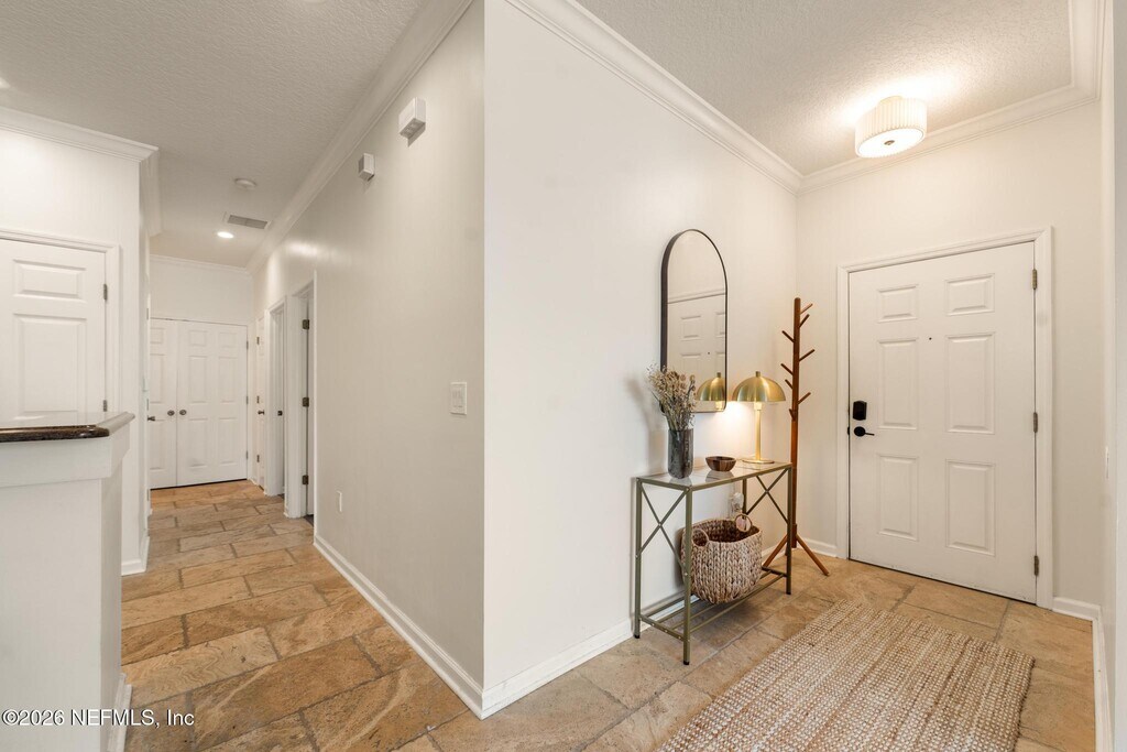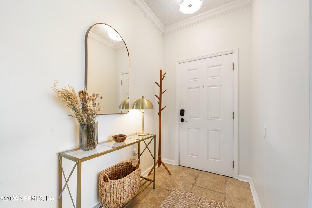 Beautiful & well maintained 3 bedroom,2 bath,corner end unit condo!! This unit features no stairs & a peaceful green space just outside your screened in back porch. The unit boasts an open floor plan that offers neutral tones throughout & elegant finishes including travertine flooring,granite kitchen counters,slate brick backsplash,42-inch oak cabinets,under-cabinet lighting & crown molding. The kitchen is equipped with stainless steel appliances,a breakfast bar and a large pantry. A spacious primary retreat offers an oversized walk-in closet,while the split-bedroom layout ensures privacy for guests or family. Attached one-car garage with direct entry. This unit comes with a washer and a dryer. Pets are allowed with the owner's approval. Resort-style Kernan Forest amenities include pool,playground,basketball courts & more. Amazing gated community with an ideal location for access to The Beaches,Mayport Naval Base,UNF,Mayo Clinic & Jax Airport! MLS# 2136547