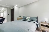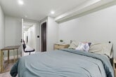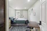 This fully furnished bedroom is front to the home, built in ceiling fan, recessed lights reaching closet and dresser and a newly constructed laminate floor with electric fireplace. This property located 1 mile form downtown Baltimore will service a-perfect for if working downtown or studying at UMMC, VA or UB