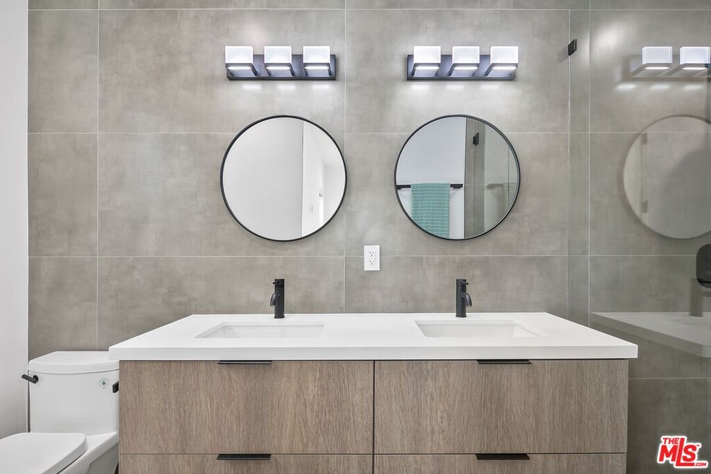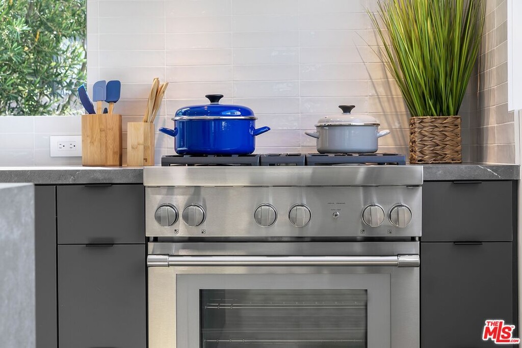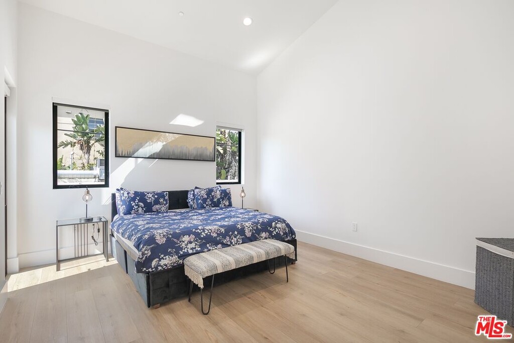 FULLY-FURNISHED, FULL-EQUIPPED. AVAILABLE FOR SHORT AND LONG STAYS brand-new construction in a central West Hollywood location! Walk through the front door to the living space. Relax on the couch and watch your favorite streaming service or local channel on the large flat-screen TV. Cook a meal in the large kitchen with stainless-steel Thermador appliances. Enjoy your food at the gorgeous kitchen island with bar stool seating for 4, or gather in the dining area with a dining table and seating for 6. The first bedroom is situated next to the living room on the first floor, making it easily accessible for anyone. Rest on the Queen bed and enjoy the spa-like attached bathroom with 2 sinks and a shower. Head up the stairs to find the Master suite with a King bed, Smart TV, spacious walk-in closet, and private balcony with lounge furniture. The attached Master bath offers 2 sinks and a shower. Both bedrooms provide room-darkening shades for the best comfort and sleep possible. Step outside to the private patio and enjoy a snack under the tress at the picnic table. The unit offers garage parking for 2 vehicles and laundry room with a washer and dryer. Recessed lighting and hardwood flooring found throughout the home. MLS# 25596489