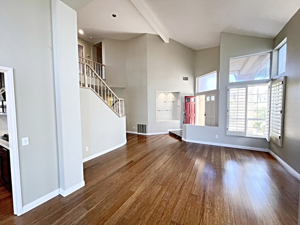This unique 5-bedroom, 4-bathroom home is located in the highly desirable Park Village neighborhood. Upon entering, you'll be greeted by bright spaces and soaring ceilings in the formal living and dining areas. The layout flows seamlessly into a spacious kitchen, which features an abundance of cabinets, a large island with a 5-burner gas stove, dual ovens, and a vent hood. Adjacent to the kitchen is a sizable breakfast nook that overlooks a beautiful yard. The cozy family room offers a perfect space for private entertainment. Upstairs, you’ll find the primary bedroom suite includes a large walk-in closet and dual sinks, providing ample space and comfort. A second primary suite also features its own full bathroom. Two additional bedrooms share a luxurious hallway bathroom. There’s a downstairs bedroom currently set up as an office, along with another full bathroom on the main level. The home includes a 3-car garage with painted flooring. Custom paint tones, and quality bamboo and engineered wood flooring throughout the main living areas. The dramatic stairway and a nice lot with beautiful views add to the appeal. Located in the award-winning Poway School District, the home is served by Park Village Elementary, Mesa Verde Middle, and Westview High. It offers close access to highways 56, 15, and 5, and is just minutes from Penasquitos Creek Park. You’ll also be within a short distance of a public library, YMCA, shopping mall with various restaurants, banks, and post offices. • Rent: $5,500/month • Living space: 2,710 sqft • 5 bedrooms / 4 bathrooms • 3-car garage • Refrigerator, microwave and dishwasher • Washer and dryer available upon request • Gas stove and oven • Central AC and heating • Move-in ready condition • Rental insurance is mandatory • Tenant pays for all utilities • Yard maintenance costs are split 50/50 between the owner and tenant • No smoking inside the house • Pets under 50 lbs are allowed with an additional fee • Available 1/1/26. Move in earlier is possible