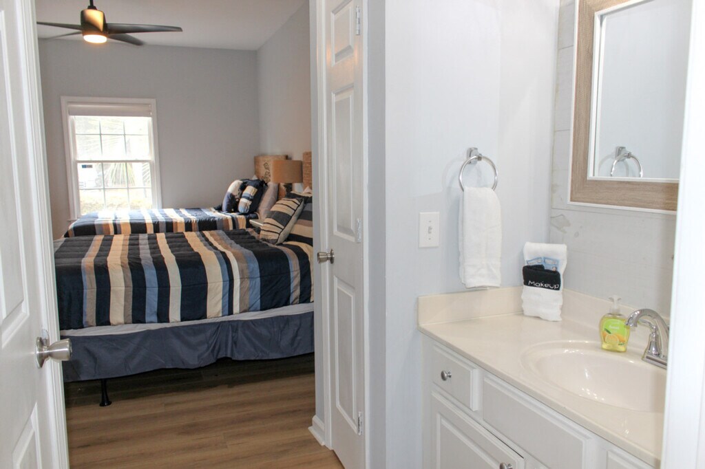 Feel at home in this beautiful hotel-style suite at Sea Trail's Sunset Beach Condo. This ground-floor suite is just minutes away from Sunset and Ocean Isle Beach. This unit offers one full bathroom and includes one king-size bed, a microwave, a refrigerator, and a coffee maker. Enjoy proximity to world-class golf courses, pools, fishing spots, restaurants, bike and hiking trails, and local shops. Please throw out the garbage upon exiting; cans are at the bottom of the steps. [SI]