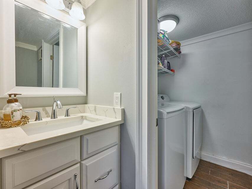 Fully Remodeled Townhouse in Prime East Boca Raton – Walk to Mizner Park! Live the vibrant Boca Raton lifestyle in this beautifully renovated, move-in-ready townhouse just moments from Downtown and Mizner Park. This 2-bedroom, 2.5-bath residence offers a perfect blend of modern elegance and urban convenience. Step inside to an open-concept layout filled with natural light, featuring a chef-inspired kitchen with sleek quartz countertops, classic white cabinetry, a large island with seating, and premium Whirlpool stainless steel appliances. Enjoy the added convenience of an in-unit washer and dryer and abundant storage throughout. Upstairs, you'll find two spacious ensuite bedrooms with wood floors, while crown molding and designer finishes throughout add a touch of sophistication. A private patio provides the perfect setting for al fresco dining, and the community pool is just steps away for a refreshing escape. One assigned parking spot and ample guest parking are included. Located within walking distance of coffee shops, Publix, UPS Store, F45 Fitness, and more—this is truly a walkable East Boca gem. Don't miss this opportunity to experience stylish, low-maintenance living in one of Boca Raton’s most sought-after locations. Listing courtesy of eXp Realty LLC.