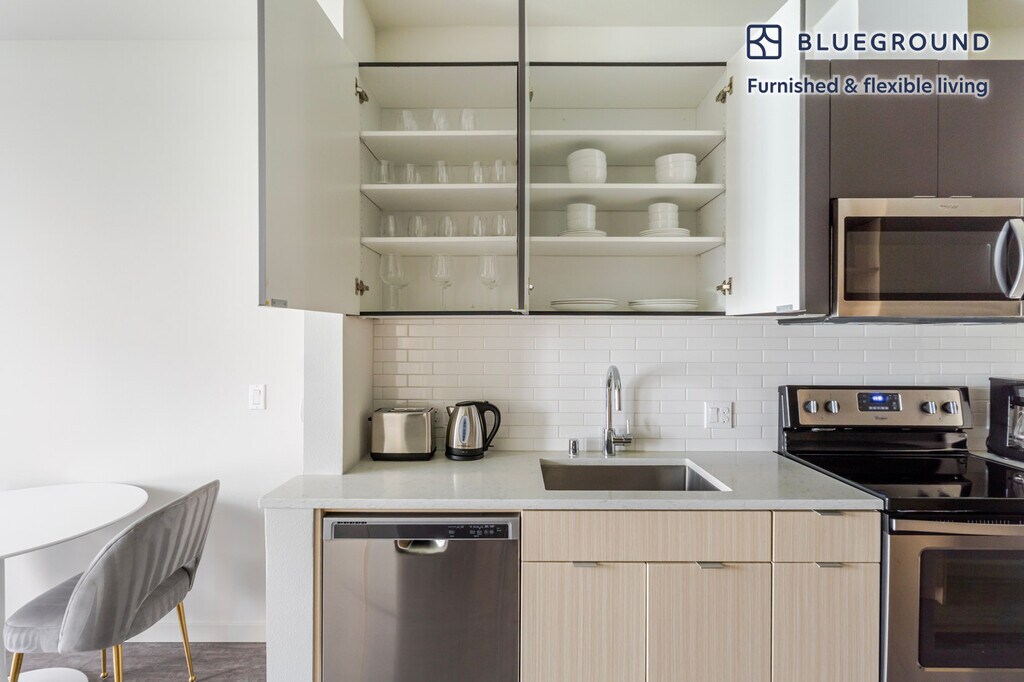 Feel at home wherever you choose to live with Blueground. You’ll love this beautiful South Lake Union furnished one bedroom apartment with its modern decor, fully equipped kitchen, and roomy living room. Ideally located, you’re close to all the best that Seattle has to offer! (ID #SEA884) The advertised rate of $2,653/month is the lowest available price, based on a 1 month(s) and 3 day(s) stay with a move-in date of March 22, 2026. If you’re looking for a 1-year stay, the rate is $3,283/month. Rates vary depending on the duration of stay, season, and other parameters. For exact pricing and additional pricing components, please visit our website and enter your desired move-in and move-out dates. The rate is applicable when billed upfront; it can be higher if billed in multiple payments. Brokers are welcome to reach out. Were you looking for an unfurnished lease? Try Blueground instead and upgrade from unfurnished to furnished living: - Furnished at rates comparable to unfurnished - No setup or furniture costs - save thousands - Move-in ready - save time, just bring your suitcase Designed with you in mind Gorgeous furniture, fully equipped kitchen, smart TV, and a premium wireless speaker are just a few of the amenities you’ll find inside this one bedroom apartment. Ideally located in Seattle, you’ll find a lot to love outside as well. When you’re ready to relax, you’ll be happy to discover every Blueground bedroom comes with superior quality mattresses, fully stocked linens, and cozy towels. We handle everything so you can simply show up and start living. This apartment also offers in-apartment laundry. Sleeping arrangements Queen Bed, 63in/160cm Amenities Building amenities unique to this one bedroom apartment include an on-site: - Dryer - Elevator - Washing machine - Lounge - Parking Arrival and ongoing support The entire apartment is yours to enjoy! Throughout your stay, you’ll have access to our Client Experience team through the Blueground App. You can schedule additional cleanings, submit maintenance requests, and view our neighborhood recommendations with just a few taps. We’ll share all details upon confirmation of your stay. Ideally Located This furnished apartment is situated in South Lake Union, a hub for Amazon and the Seattle Times as well as the entire biotech industry. It’s constantly buzzing thanks to the numerous bars, restaurants and food trucks. In Lake Union Park, along the water sits the Museum of History & Industry which highlights the city’s history as well as business and innovation. Locals often head out to the lake for boating and paddle boarding. This neighborhood is also the home of Denny Park, which is the oldest green space in the city. To access other parts of the city from here, simply hop on the streetcar. Other things to note Building amenities may have an extra cost. This Blueground apartment has flexible lease options, allowing you to book it for one month, a year, or more. Parking is offered based on availability and is subject to a fee. We take great pride in ensuring every photo displayed is shot in our own units with our actual furnishings. That said, we regularly refresh our decor and furniture arrangement, which may differ from what’s pictured. [SI]