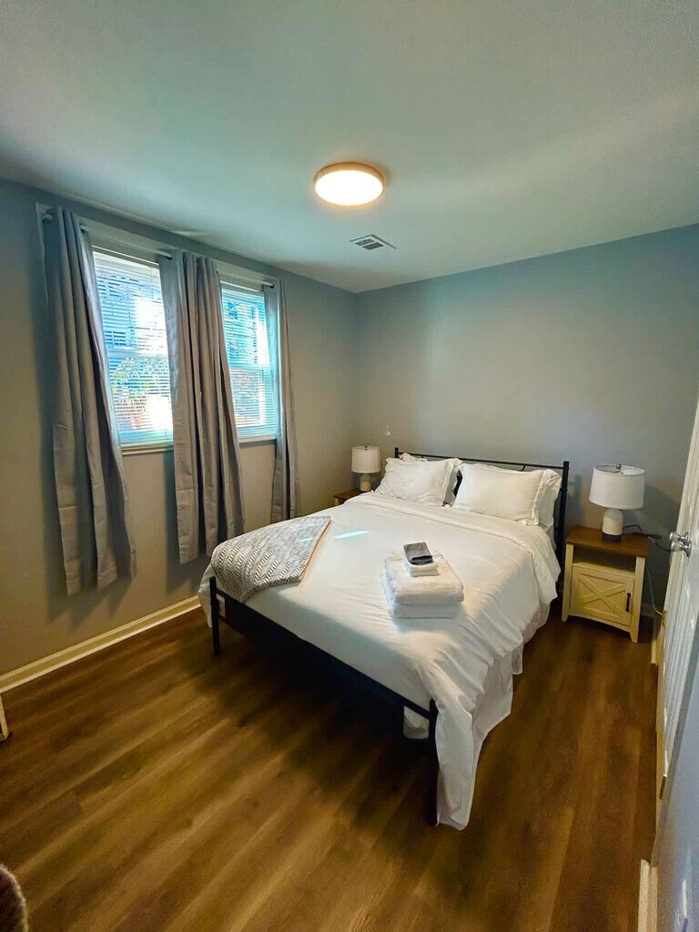 Feel at home in this stylish and thoughtfully furnished 2-bedroom retreat in Northeast DC. This apartment features a fully equipped kitchen with cookware, dishes, and utensils, as well as an in-unit washer and dryer, high-speed Wi-Fi, and a smart TV with Roku. Also provided are shampoo, conditioner, body wash, a hair dryer, a coffee maker with starter pods, and an iron and ironing board. Optional off-street parking is available for $25 per night. Walk to Union Market, H Street Corridor, and local dining. This quiet neighborhood is perfect for professionals, couples, and travelers seeking comfort and convenience. Self-check-in is available via smart lock. Free street parking is available. Includes a designated workspace. [SI]
