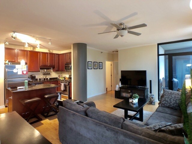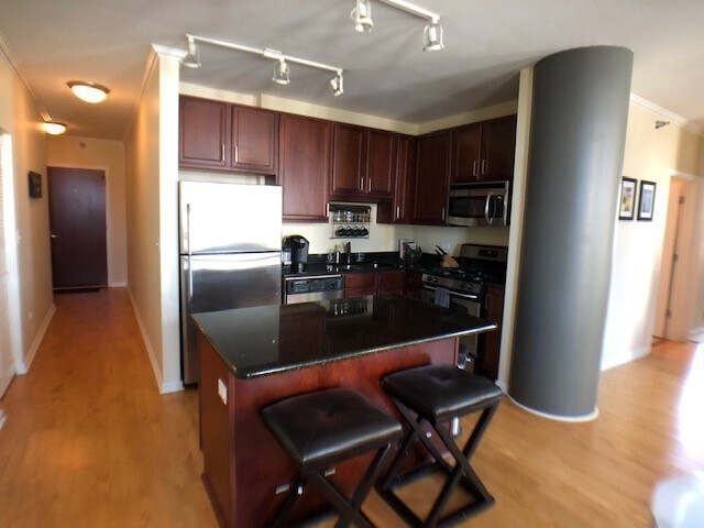 Available now! With parking included! And fabulous outdoor space! Beautiful and spacious,this unique property is the largest east facing 1-bedroom/ 1 bath floor plan at 831 sq. ft. also featuring a huge outdoor space,a private 14' x 22' patio,adjoining the condo association's green roof. The apartment's open floor plan features hardwood flooring in the living area,a kitchen with a granite island,stainless steel appliances,and lots of cabinets. There's a large bedroom with a huge walk in closet and an in-unit washer/dryer as well as an office nook and an extra storage unit.Building amenities include 24-hr door-persons,a fitness center,on- site management and maintenance,key lockers and a package room. Rent includes heat,air conditioning,water,cooking gas,cable and internet,exterior maintenance and common insurance. ALL UTILITIES EXCEPT ELECTRIC ARE INCLUDED. Conveniently located near all shopping: Right next Jewel,one block from Trader Joe's. Whole Foods,Target and Home Depot are also close by. Excellent transportation: Near trains,buses and expressways. Close to the lake. the park,and the museum complex. MLS# MRD12460204 Based on information submitted to the MLS GRID as of [see last changed date above]. All data is obtained from various sources and may not have been verified by broker or MLS GRID. Supplied Open House Information is subject to change without notice. All information should be independently reviewed and verified for accuracy. Properties may or may not be listed by the office/agent presenting the information. Some IDX listings have been excluded from this website. Prices displayed on all Sold listings are the Last Known Listing Price and may not be the actual selling price.