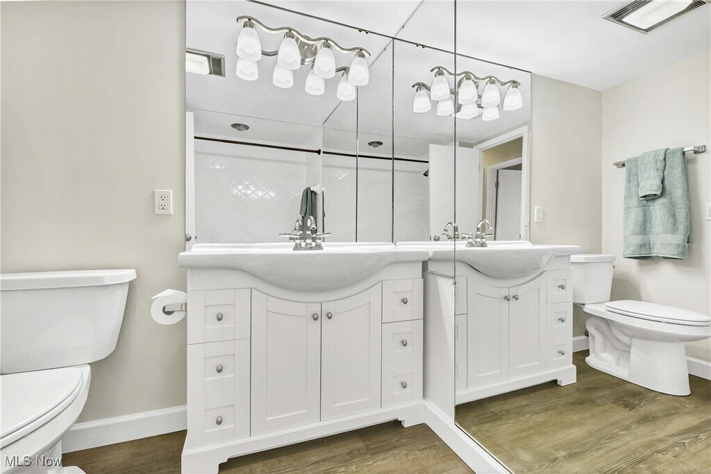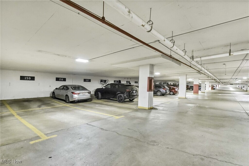 Beautifully renovated NE corner suite in Meridian Condos. Stunning views of Cleveland's skyline and Lake Erie. Large,wraparound balcony. Open floor plan includes 3 spacious bedrooms. The laundry room is conveniently located on the same floor plus an additional,large washer and dryer is located on the amenity level. Large,open kitchen with breakfast bar and NEW APPLIANCE PACKAGE. Abundant storage throughout the suite including a walk-in pantry and walk-in closet in the owners' suite. A storage locker is on the amenity/garage level. Two (tandem) parking spaces (#159) are included in the underground parking garage. 24-hour front desk and many fine amenities including one indoor pool and whirlpool,one outdoor pool,fitness room,saunas,racquet ball court,billiard room,picnic and patio areas with gas grills.