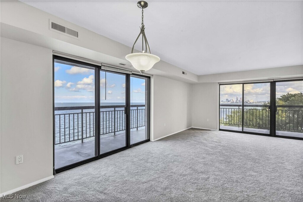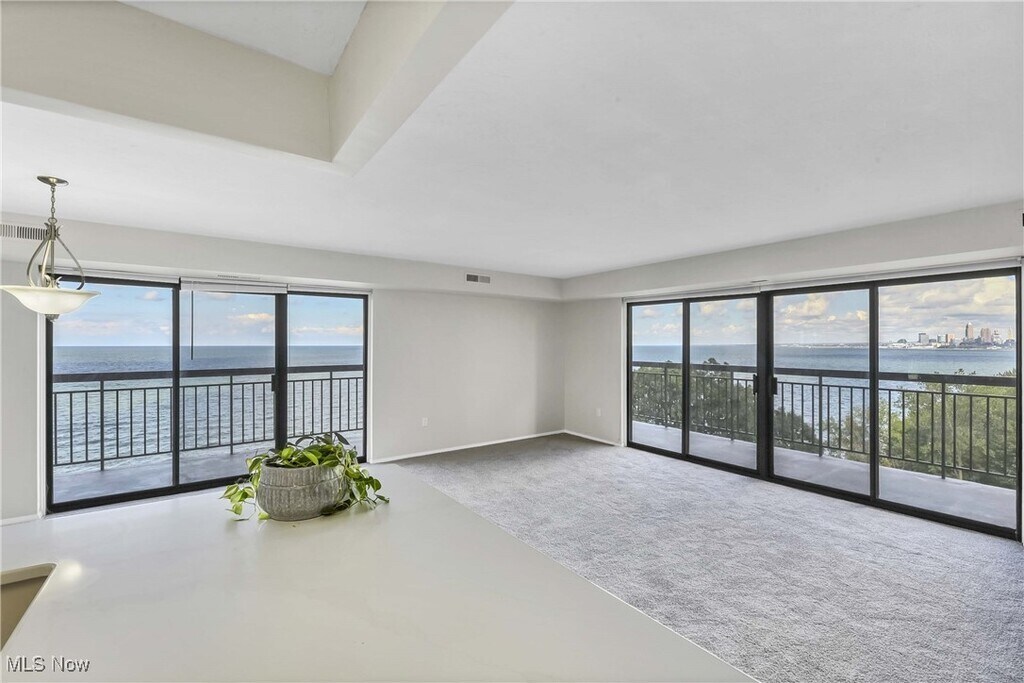 Luxury Lakefront Living – Fully Furnished Corner Condo at The Meridian Experience elevated living in this stunning 15th-floor northwest corner unit at The Meridian,one of Lakewood’s premier lakefront communities. Offered fully furnished or unfurnished,this rare rental opportunity delivers both sophistication and ease — ideal for those seeking an effortless move-in experience with breathtaking panoramic views of Lake Erie that evoke the feeling of oceanfront living. Step inside to discover an open,light-filled layout designed for comfort and style. The beautifully renovated kitchen features rich dark wood cabinetry,bright quartz countertops,a double-sided sink,breakfast bar,and stainless steel appliances — perfectly appointed for both daily living and entertaining. The formal dining area overlooks the lake and flows seamlessly into the spacious living room,where walls of glass frame sweeping water views and mesmerizing sunsets. The primary suite offers a tranquil retreat with an updated ensuite bath and an expansive walk-in closet rarely found in condominium living. The second bedroom also features its own large walk-in closet,providing abundant storage and flexibility for guests or a home office. A second full bath and convenient common laundry just down the hall complete this thoughtful floor plan. Enjoy additional in-building storage,a tandem parking space,and a private storage locker. Every detail has been considered — from the new flooring and designer lighting to the modern finishes that create a cohesive,refined aesthetic throughout. Residents enjoy resort-style amenities,including 24-hour front desk service,indoor and outdoor pools,fitness center,hot tub,racquetball and billiards rooms,library,party room,dog run,and a picnic area with gas grills. Rent includes water,sewer,gas,and trash; tenant responsible only for electric and internet.