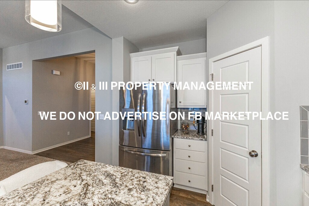 Reverse 1.5 story home is situated on a walkout lot in the desirable Arbor Woods neighborhood. Main floor open concept living at its best! Bright and airy kitchen includes a center island, white cabinetry, stainless steel appliances, and a spacious pantry. Dining area with access to the covered deck area. Bright and airy living room with gas fireplace. The primary bedroom is generously sized and includes a beautiful en-suite bathroom with double vanities and walk-in closet. Laundry room conveniently located on the main floor, as well as a spacious secondary bedroom with an adjacent full bath. Finished basement offer a second family room and a wet bar. There is also a secondary primary suite on this lower level, complete with a roomy bedroom, expansive bathroom, and walk-in closet. A media room is also available that could serve as a theater or non-conforming bedroom. Basement also features a FOURTH full bathroom and a fourth bedroom. The home is within walking distance of Forest View Elementary. Fully fenced backyard with deck and patio space. Pets welcome with a $500 non refundable pet fee and an additional $25/mo per pet.