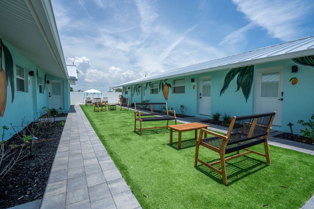 Welcome to Mango Street Inn, a beautifully renovated boutique inn that has come back to life after more than two years of rebuilding since Hurricane Ian. Each guest suite offers a full kitchen, a comfortable living area, and a spacious king-size bedroom, creating the perfect retreat for your stay. Enjoy a cozy yet modern atmosphere with stylish décor, soft furnishings, and plenty of natural light. Step outside to our inviting courtyard, surrounded by lush tropical landscaping and vibrant mango murals, where you can unwind in a peaceful setting with rocking chairs and outdoor seating. Each guest suite offers a full kitchen, a comfortable living area, and a spacious king-size bedroom, creating the perfect retreat for your stay. Enjoy a cozy yet modern atmosphere with stylish décor, soft furnishings, and plenty of natural light. Step outside to our inviting courtyard, surrounded by lush tropical landscaping and vibrant mango murals, where you can unwind in a peaceful setting with rocking chairs and outdoor seating. Located in a prime spot, this inn is just a short walk to the beach, allowing you to sink your toes in the sand within minutes. It's also close to downtown, providing quick access to local dining, shopping, and nightlife. Perfect for adventure seekers, the area is near water activities, bike rentals, and scenic walking paths. This unit is self check-in, and you will be given a door code for entry via email or inbox. Beach access is across the street, about a 5-minute walk. Quiet hours are from 10pm to 9am, and guests are requested to rinse off sand with the shower before entering the property. [SI]