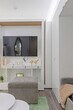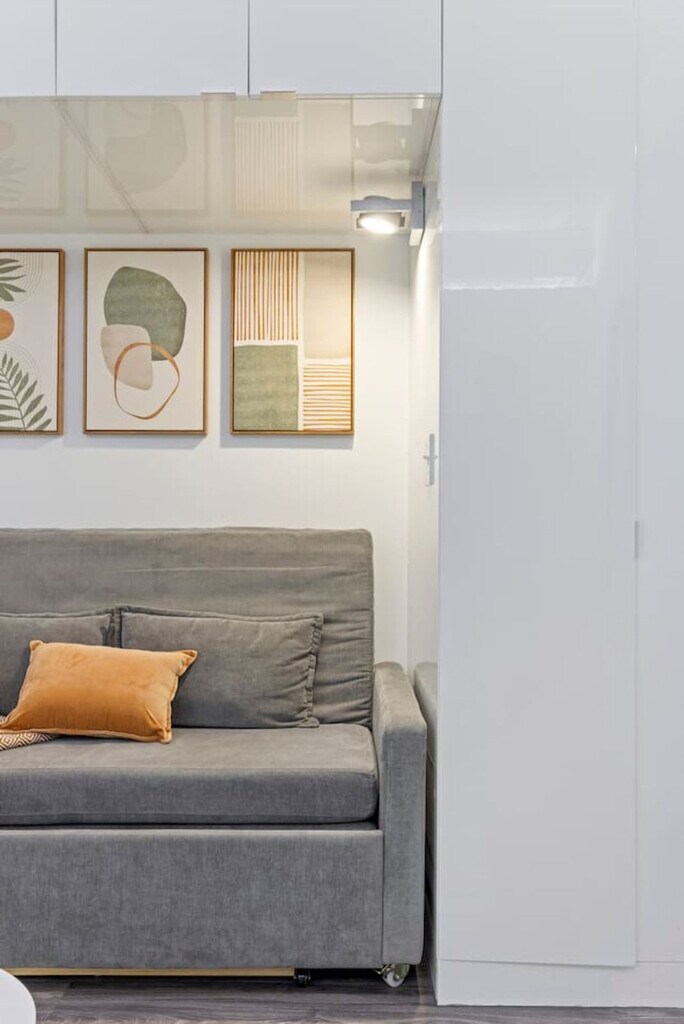 Discover comfort and convenience and feel at home in this charming city haven. This 1st-floor apartment is perfect for professionals and travelers. This stylish, open-concept apartment features chic furnishings and a convertible floor plan for extra space. The fully equipped kitchen includes a coffee maker, kettle, pots, pans, olive oil, salt, and pepper. Enjoy the convenience of an in-unit washer and dryer, a 50" smart TV, and high-speed Wi-Fi. Bathroom essentials such as shampoo, conditioner, body wash, and a hair dryer are provided. Additional comforts include air conditioning, room-darkening shades, laundry detergent, dish soap, a coffee and tea station, an iron and ironing board, and fresh linens, pillows, and blankets. This unit also features a handicap-accessible bathroom with a step-free shower and support rails. Free private parking is available. Enjoy access to the rooftop patio. Centrally located near University Circle, Cleveland Clinic, Cleveland Museum of Art, Museum of Natural History, and Little Italy’s charming shops and eateries. Downtown, Rocket Mortgage FieldHouse, Progressive Field, and Browns Stadium are easily accessible by bike, car, train, or bus. Quiet hours are from 10 PM to 8 AM. Smoking indoors is prohibited and will result in a $500 fine. Pets are not allowed, and unregistered pets will incur a $500 fine. Unauthorized parties or events will result in a $1,000 fine and removal without a refund. There is a security camera located outside the unit door, and covering or disabling it will result in a $500 fine. There is a noise-aware sensor installed in the unit to monitor decibel levels. A late check-out fee of $50 per hour will be charged after 11 AM. Includes a dedicated workspace. [SI]