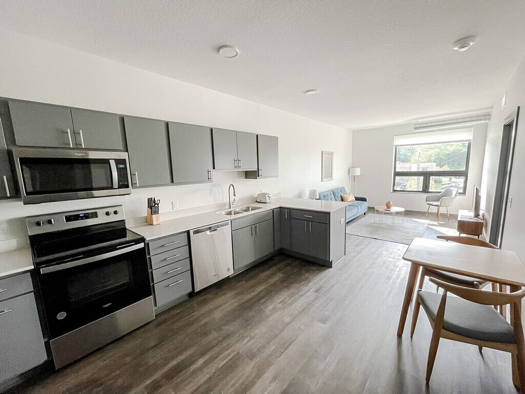 Feel at home in this modern 1-bedroom, 1-bathroom apartment, centrally located in Des Moines. With large windows and high ceilings, the space feels even more spacious, offering a private living room, bedroom, bathroom, kitchen, and in-unit laundry. The apartment is thoughtfully designed with modern furnishings and a fully equipped kitchen. Enjoy the convenience of in-unit laundry and relax in the private living room, making it a perfect retreat after exploring the city. Guests have access to their own unit and the parking lot in the back of the property. Centrally located for easy access to Downtown and the suburbs, this apartment is in the heart of Des Moines' best offerings. Discover more than 100 specialty shops, art galleries, and restaurants in Valley Junction, or visit the Jordan Creek Town Center with its 3.5-acre lake and boardwalk, just minutes away. Smoking of any kind is never allowed at this property, including the balcony or patio, and all common and outdoor areas. Any smoking violations will result in a $500 fee. Quiet hours are from 10 p.m. to 8 a.m., and parties and large gatherings are strictly prohibited. Only certified service animals are allowed, with prior approval and an additional pet fee applied after booking. Unauthorized pets will incur a $500 fee. Check-in is at 4:00 p.m. and checkout is at 10:00 a.m., with fees for early check-in or late checkout without permission. [SI]