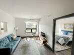Feel at home in this modern 1-bedroom, 1-bathroom apartment, centrally located with large windows and high ceilings that enhance its spacious feel. The unit includes a private living room, bedroom, bathroom, kitchen, and in-unit laundry, offering a comfortable and convenient living experience. Designed with modern aesthetics, this apartment features a private living room, bedroom, bathroom, and a fully equipped kitchen. The in-unit laundry adds to the convenience, making it a perfect choice for those seeking a hassle-free stay. Guests can park in the onsite parking lot. Additional parking information will be provided upon check-in. Situated in a prime location, this apartment offers easy access to the city's attractions and amenities. Its central position ensures that you are never far from the vibrant life of the city. Smoking of any kind is prohibited throughout the property, including the balcony or patio, and all common and outdoor areas, with a $500 fee for violations. Quiet hours are from 10 p.m. to 8 a.m., and parties or large gatherings are not allowed. Only certified service animals are permitted, with prior approval required and a $500 fee for unauthorized pets. Check-in is at 4:00 p.m. and checkout is at 10:00 a.m., with fees for early check-in or late checkout. [SI]