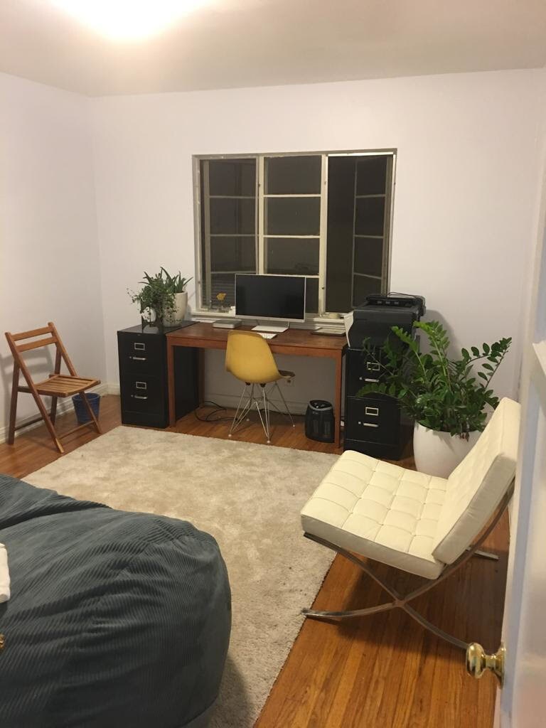 Unidad de esquina clara y brillante en un edificio pequeño. Cocina y baño recientemente remodelados. ARANDELA/SECADORA EN UNIDAD y aire central . Magníficos suelos originales de madera dura. Increíble ubicación al norte de Wilshire con distrito escolar de Beverly Hills. 1 plaza de aparcamiento incluida