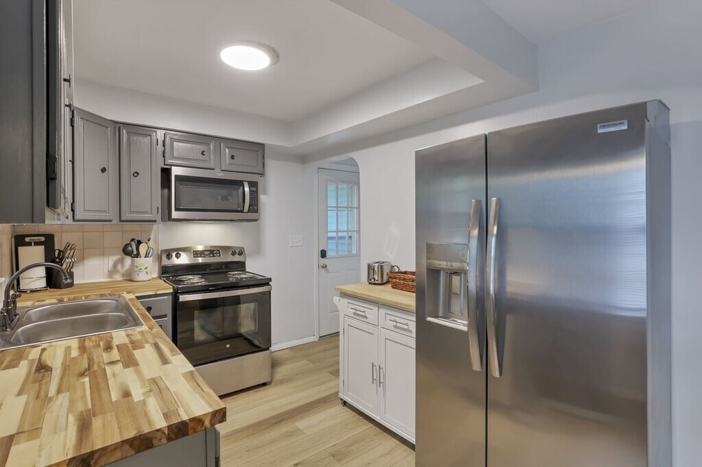 Welcome to your next home! This beautifully renovated 3-bedroom, 2-bath property offers modern comfort, generous living space, and an easy, convenient location. Thoughtfully updated throughout, this home delivers the style and functionality today's renters are looking for. Property Highlights 3 spacious bedrooms with great natural light 2 full bathrooms fully updated with modern fixtures Bright, open living room ideal for everyday living or entertaining Stylish renovated kitchen featuring new cabinetry, countertops, and appliances Beautiful flooring and fresh finishes throughout Large, fenced backyard perfect for pets, outdoor dining, or gardening Covered front porch great for relaxing Basement space for storage or additional utility needs Off-street parking and a private driveway