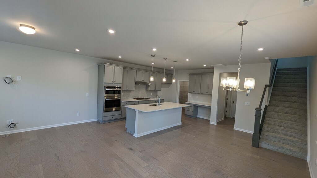 FOR RENT, Available April 1st. Beautiful open and bright end unit townhome in the Forest Lake subdivision in Brawley School Road, Mooresville, NC. The main level boasts a luxurious gourmet kitchen upgrade with quartz countertops, an over-sized island, 36” gas cooktop, elevated stainless steel appliances, upgraded stone gray cabinets, white backsplash tile, all tied together by the stunning Yukon Blanco quartz counter tops. The kitchen also features the desk upgrade, creating a convenient workspace with matching cabinets and quartz countertops as well. The great room and dining room seamlessly flow together to create a spacious first floor complimented by the lovely front courtyard and planting area. Upstairs, there are four bedrooms, including the primary suite, featuring the tray ceiling upgrade, an upgraded shower with all tile walls, and also an additional door in the primary walk-in closet that connects directly to the upstairs laundry room equipped with large washer and dryer. Adjacent to the primary suite, the loft has been converted into a 4th bedroom. The unit also has a 2-car garage and comes equipped with all appliances.