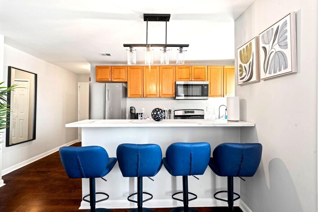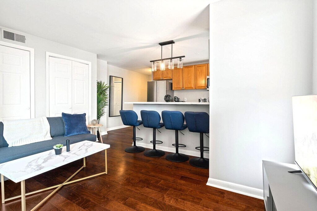Experience the perfect blend of style and comfort in this welcoming 2-bedroom apartment in Philadelphia’s lively Bella Vista district. Ideally located close to South Street and the iconic Italian Market, feel at home in this carefully designed urban retreat. This beautifully designed apartment offers comfort, modern style, and thoughtful touches. The living room is bright, airy, and inviting, blending modern design with cozy charm. The fully equipped kitchen offers modern appliances, cookware, and dinnerware. The sleek bathroom features a shower/tub combo, fresh towels, and complimentary toiletries. Pets are allowed depending on size, with a cleaning fee of $25 per night for stays of 1 to 4 nights, $200 for stays of 5 to 29 nights, and $300 for stays of 30 or more nights. This apartment offers easy access to restaurants, shops, and cultural attractions in one of Philadelphia’s most vibrant neighborhoods. Smoking is strictly prohibited inside the property, and a cleaning fee of $500 will be charged for any violation. Check-in time is after 4 PM, and check-out time is by 10 AM. Late check-outs without prior approval will incur additional charges. Please dispose of garbage in the designated bins and treat the property and its contents with respect. Any damages will be charged to the guest. Registration Number: 890018 [SI]